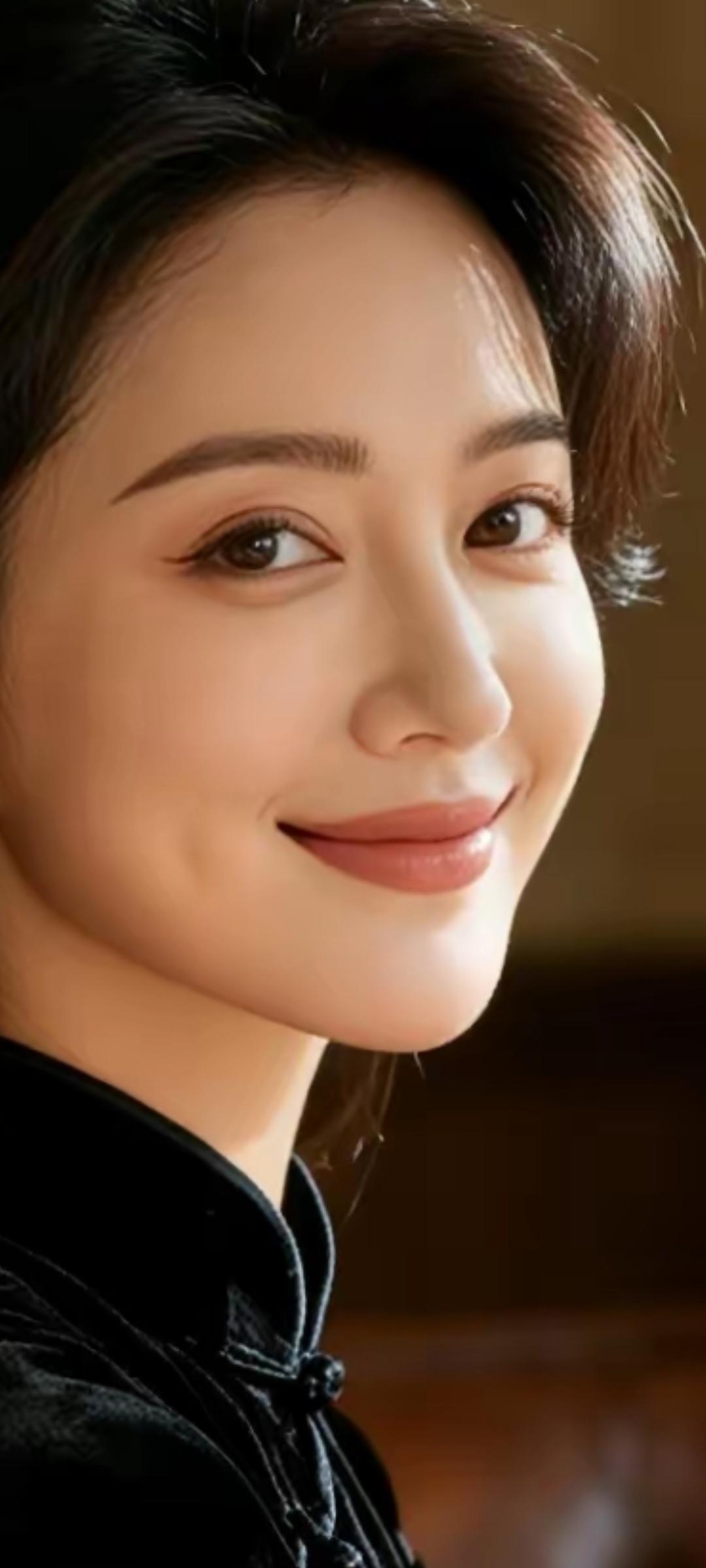 温柔微笑,黑丝绒衣,优雅气质,迷人眼眸