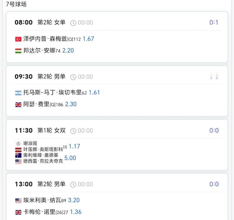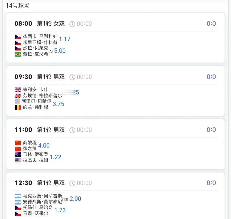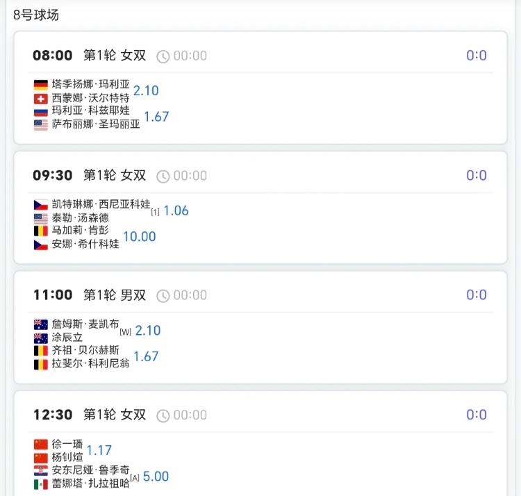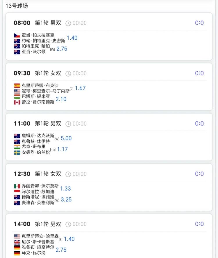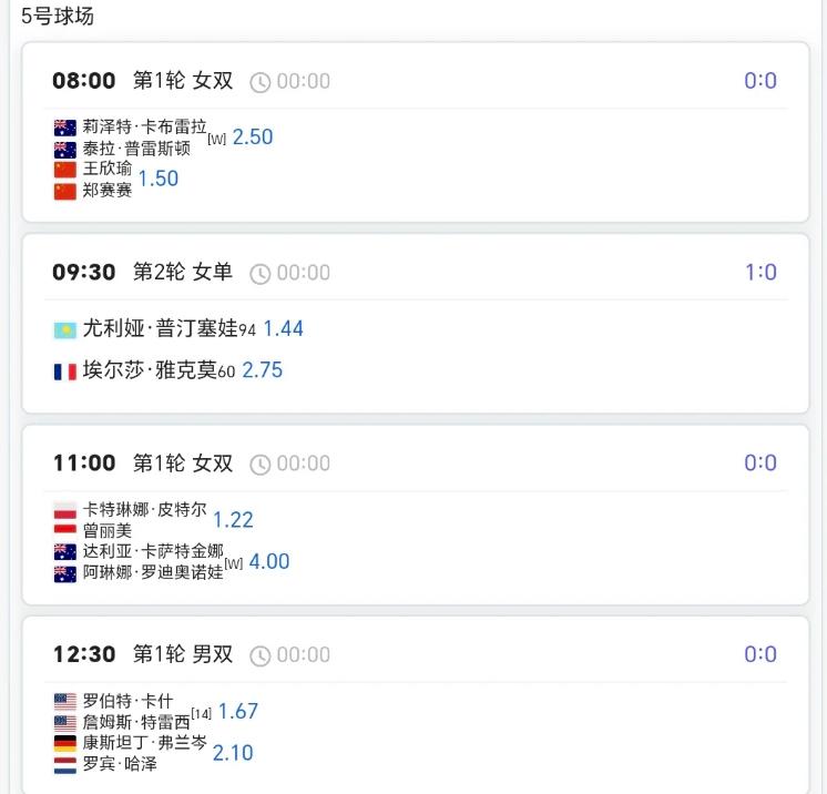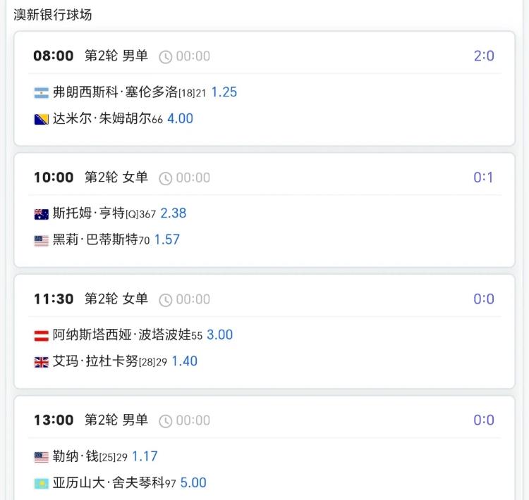 澳网第4日赛程!! 单打次轮+双打首轮 中国球员⏬⏬ 8:00王欣瑜/郑赛赛vs卡布雷拉组合 8:30白卓璇vs萨巴伦卡 11:00商竣程/张之臻vs拉姆组合 12:30杨一帆/徐钊煊vs鲁季奇组合 12:30张帅/梅尔藤斯vs卡琳斯卡娅姐合