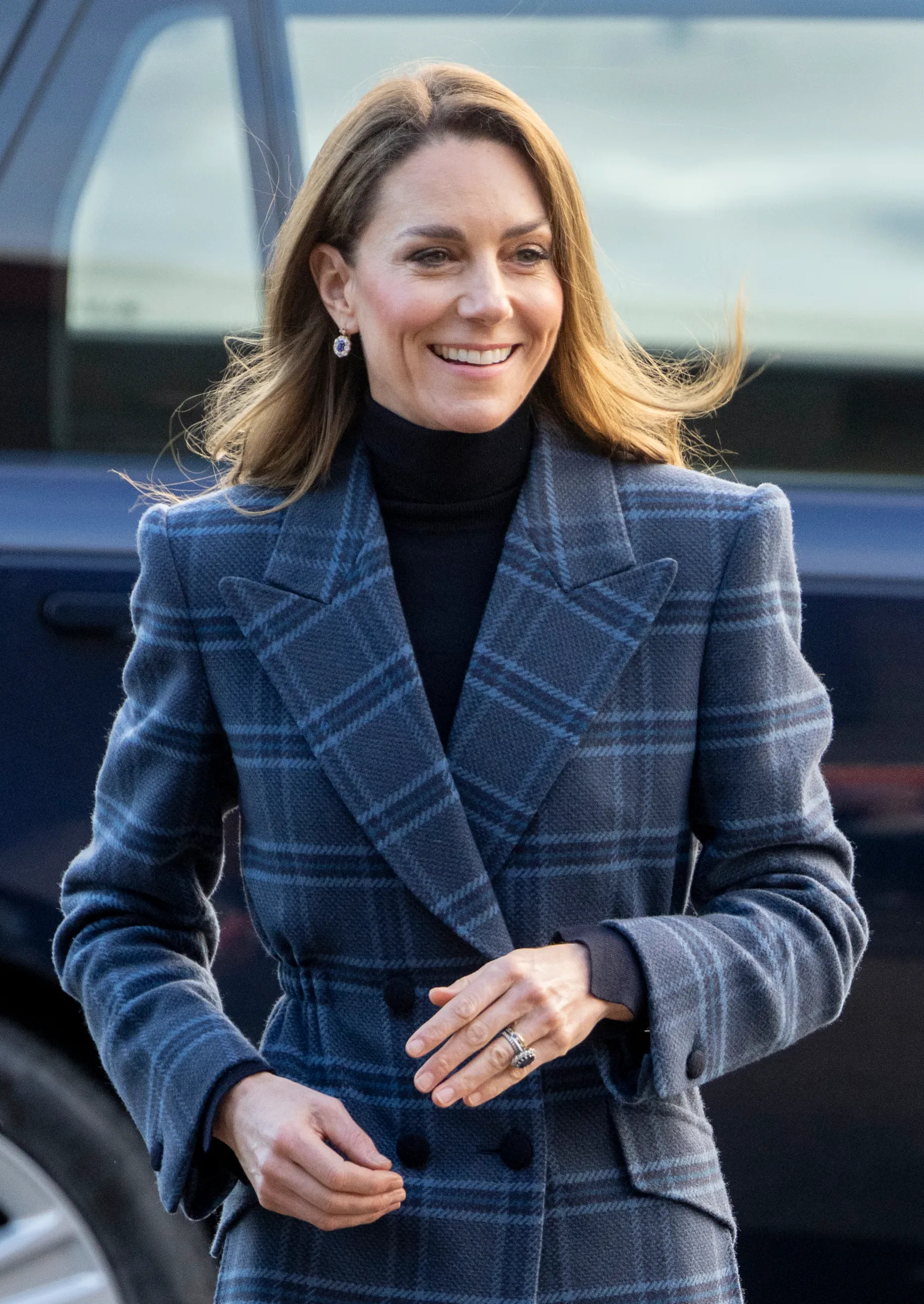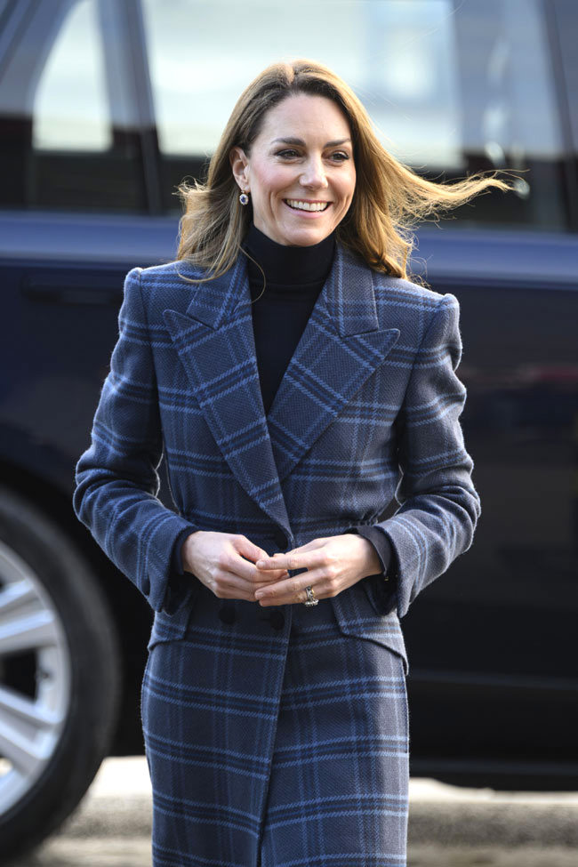 1月20日,威廉&凯特以苏格兰罗德赛公爵夫妇的身份访问苏格兰,期间的行程包括访问苏格兰斯特灵的国家冰湖学院,参观手工编织工作室Radical Weavers……选择了国旗色之一的蓝。上身了Chris Kerr的格纹大衣(新品),和她那件Blazé Milano大衣版型&设计类似,不得不说,长款大衣和高个真的hin适配~内搭的Hobbs的高领衫以及Le Kilt(品牌很多设计都是以苏格兰传统元素为灵感,特别是褶裙)的半身裙,细节点都带有苏格兰风情,和以往一样,带着满满诚意来~katemiddleton