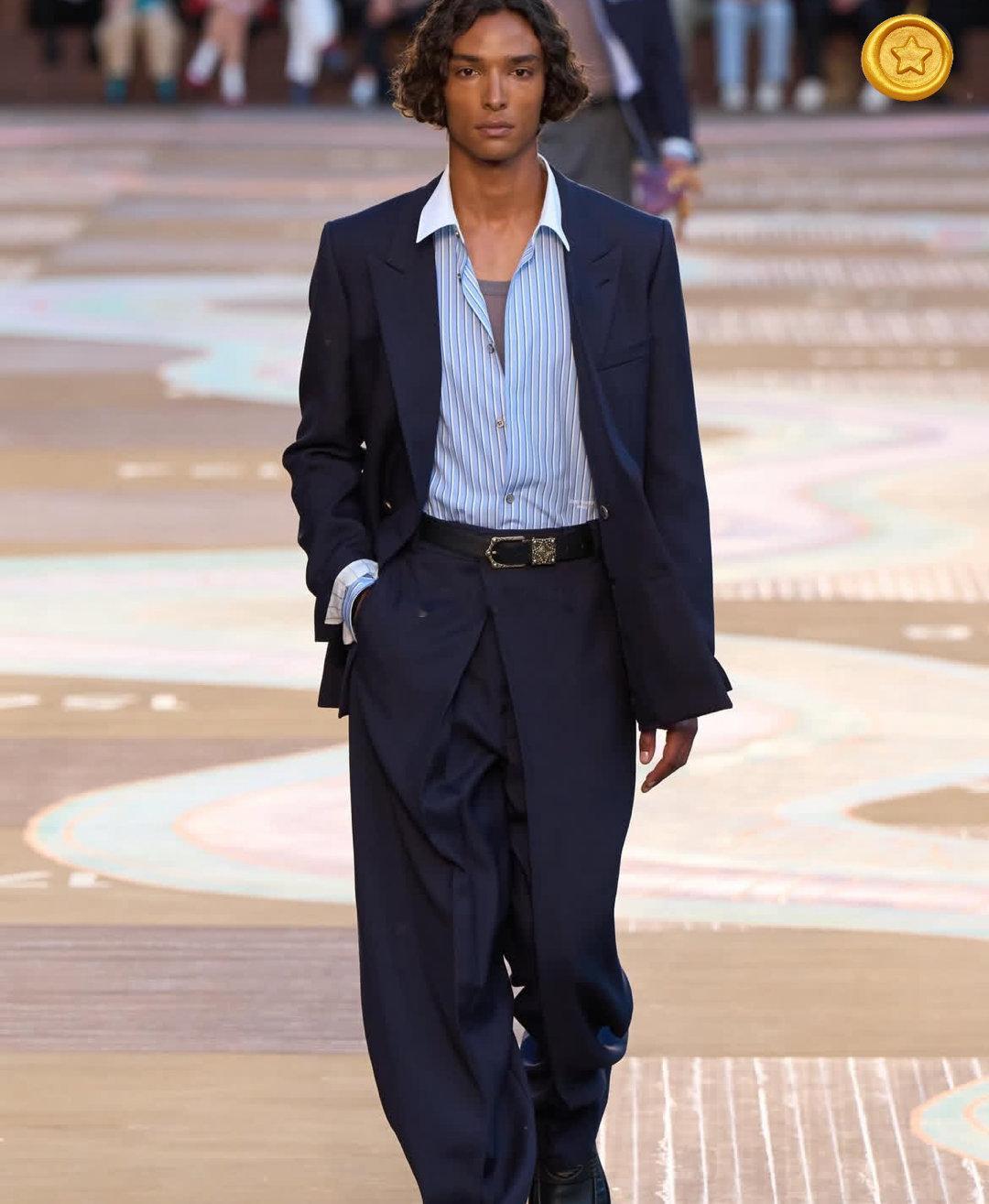 徐明浩受邀出席Pharrell Williams 执掌的路易威登 2026秋冬男装大秀。 他以品牌全新2026春夏系列造型亮相, Oversize西装内搭简约白衬衫与针织马甲, 随性垂落的印花领带, 巧妙打破常规, 将慵懒与精致完美融合, 尽显独特时尚态度。LV大秀男装周巴黎男装周