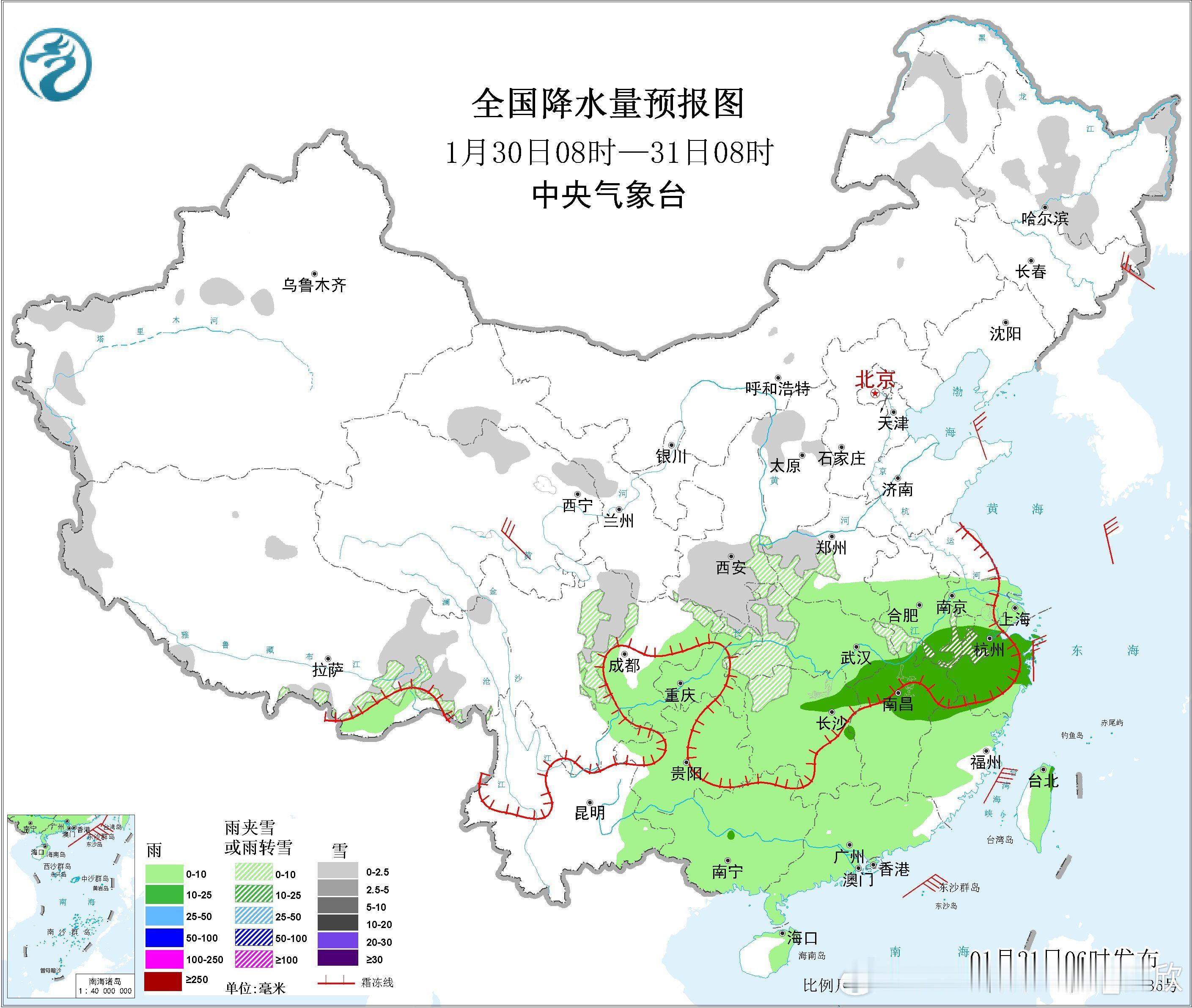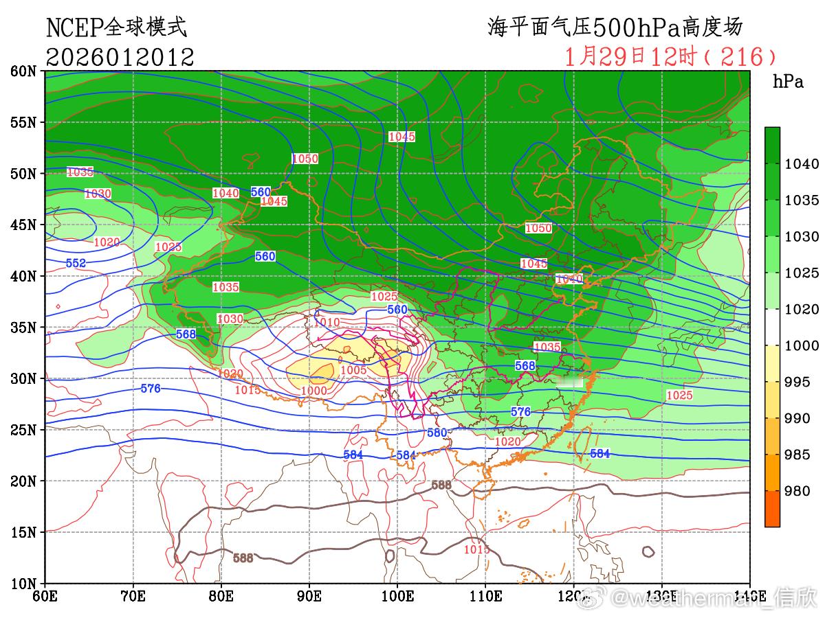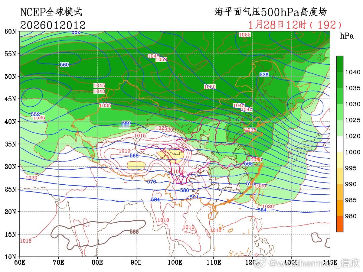 【天气展望】目前数值预报对1月底的冷空气有所调强,而且也是缓慢南下。28-30日