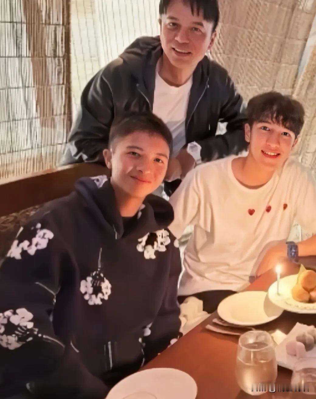 李克勤一家四口在餐厅聚餐,齐齐现身,难得一见! 18岁的大儿子留着一头卷发,脸很长,大眼高鼻,看眉眼有点像妈妈,但是五官又没有妈妈标准,有点混血儿的感觉。 14岁的小儿子,五官和李克勤一模一样,父子俩几乎是一个模子刻出来的,就连笑起来的样子也那么像。 一家子,唯独港姐出身的卢淑仪,看起来没多少变化,依然肤白貌美,保养得非常好!