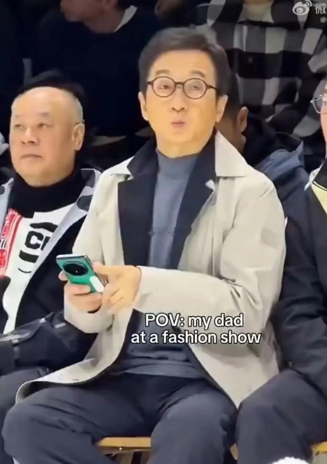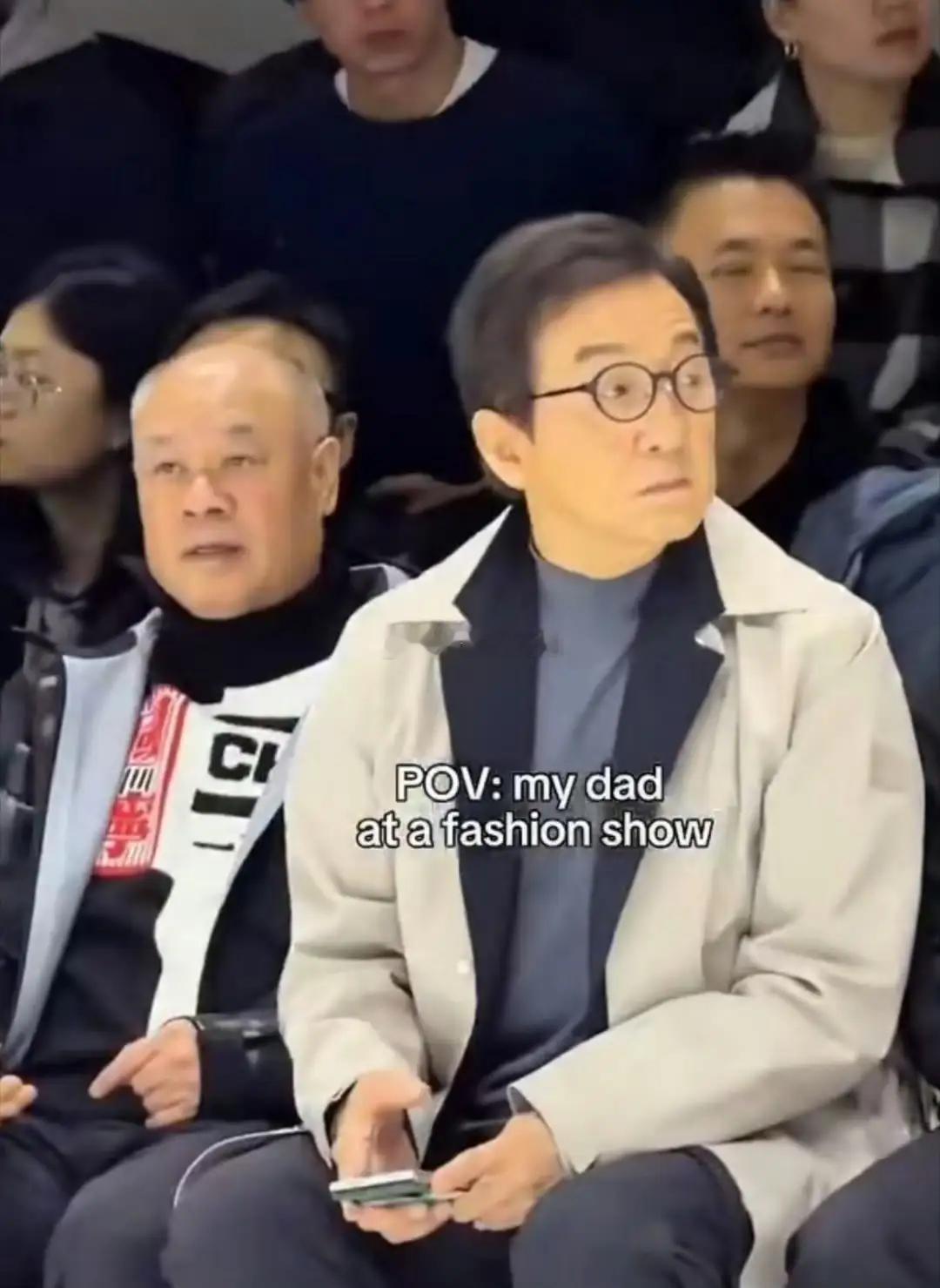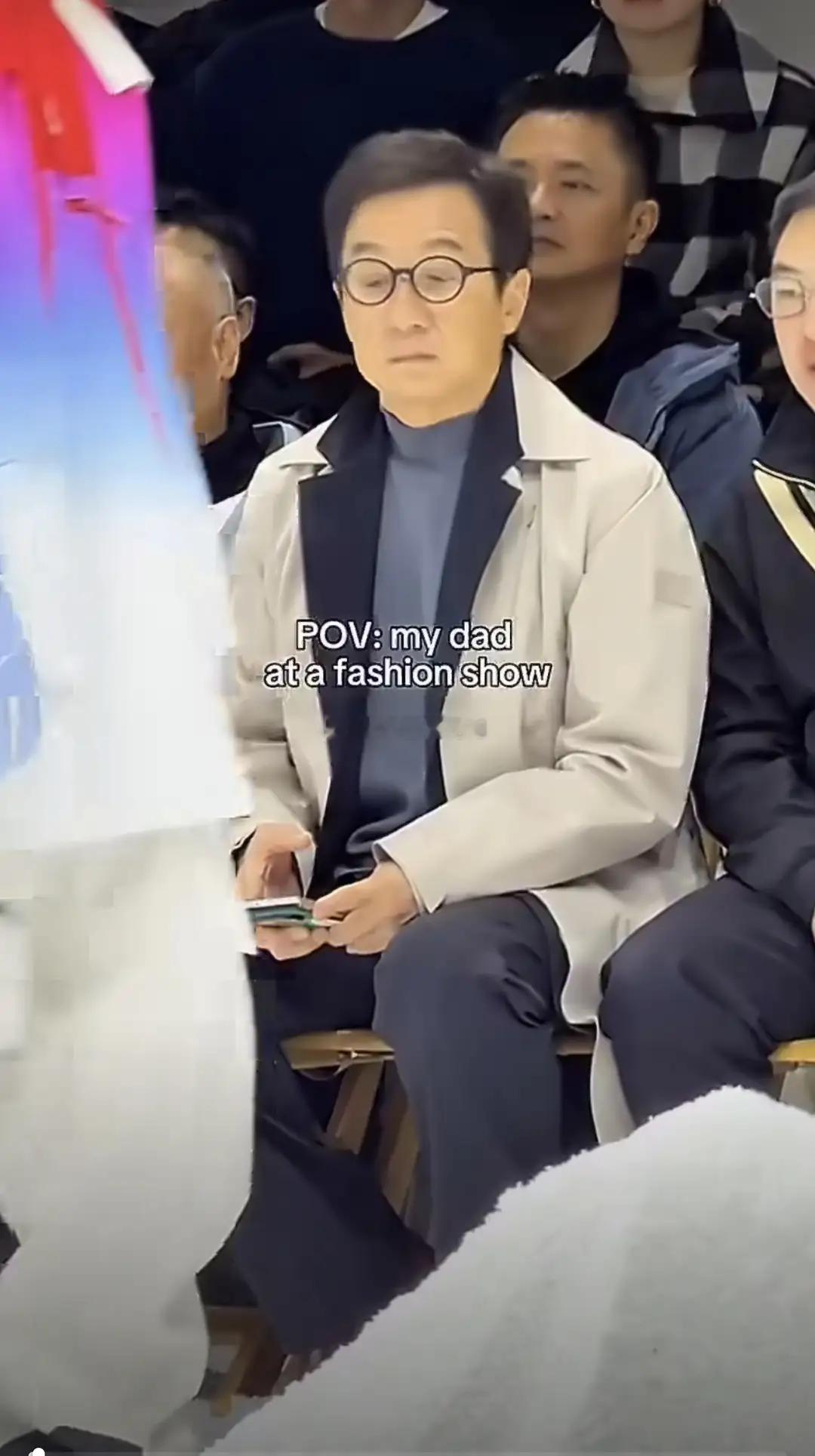 好可爱!成龙参加时装周,看秀时一脸认真又迷茫,还拿手机拍拍拍