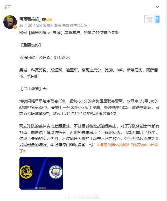闪耀哥的主场,果然曼城来了都得让三分!国足两次晋级都有曼城两次输两球陪伴周六中国vs日本和曼城vs狼队同时开赛……全体人员准备给狼队加油!昨天分析差点事,总感觉场场都有冷的感觉,今天调整状态给各位一个满意的答卷!博德闪耀3比1曼城u23国足3比0越南u23