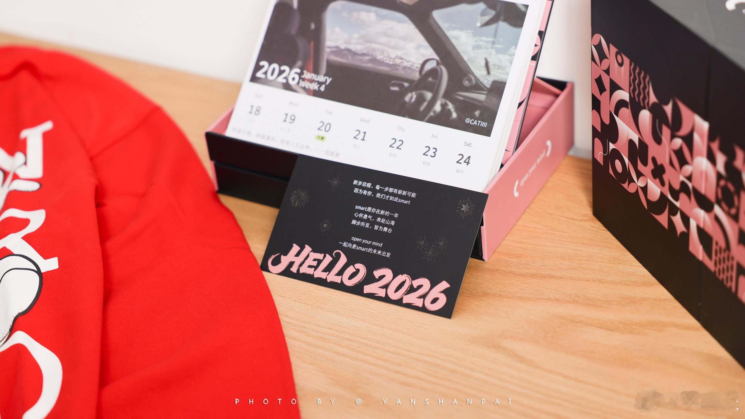 收到了Smart寄来的礼盒,里面除了一份26年日历外,还有一件红色的米老鼠衣服,小伙伴春节买新衣服的钱都省了