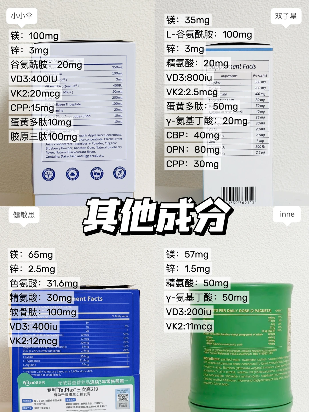 6岁+的娃不能只盯着钙!其他营养成分,比如说赖氨酸、胶原营养,还有D3+K2+CPP,都是对成长有益的黄金搭档呀