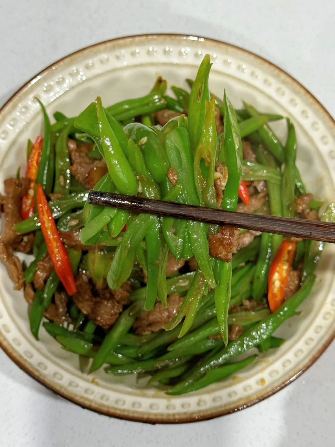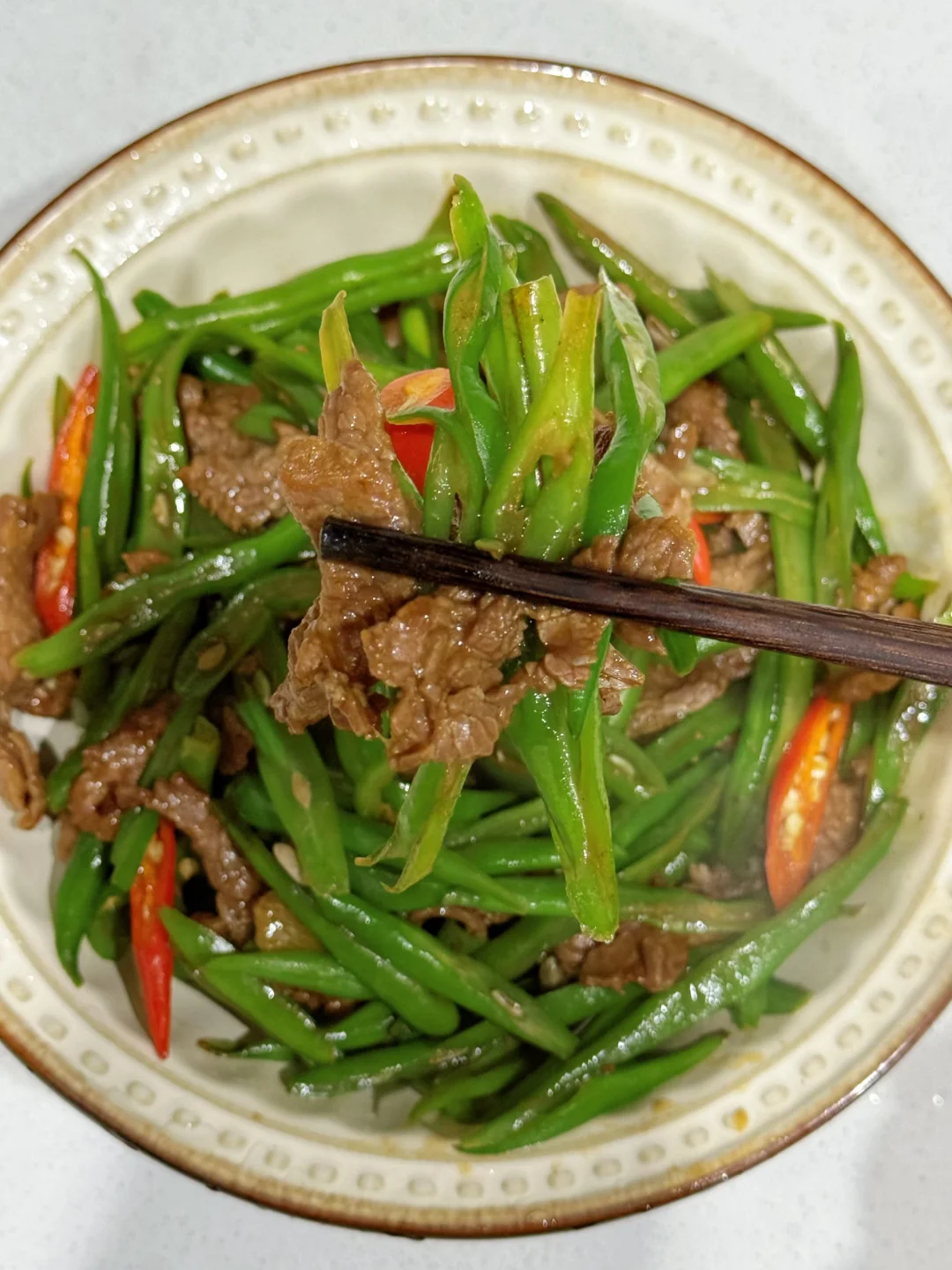 ✅【食材】:牛肉、四季豆、小米辣、蒜