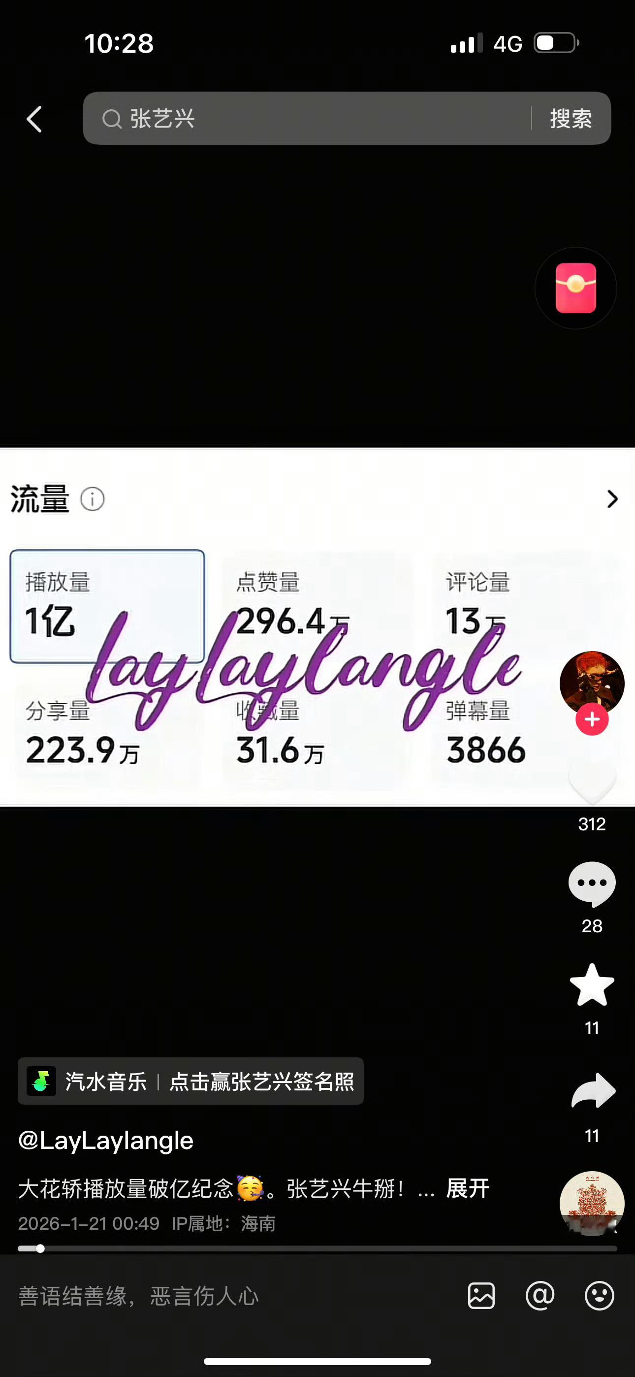 张艺兴散粉发的单条阅读量都破亿了,大花轿相关阅读量已经超过35亿了。相当于一部大