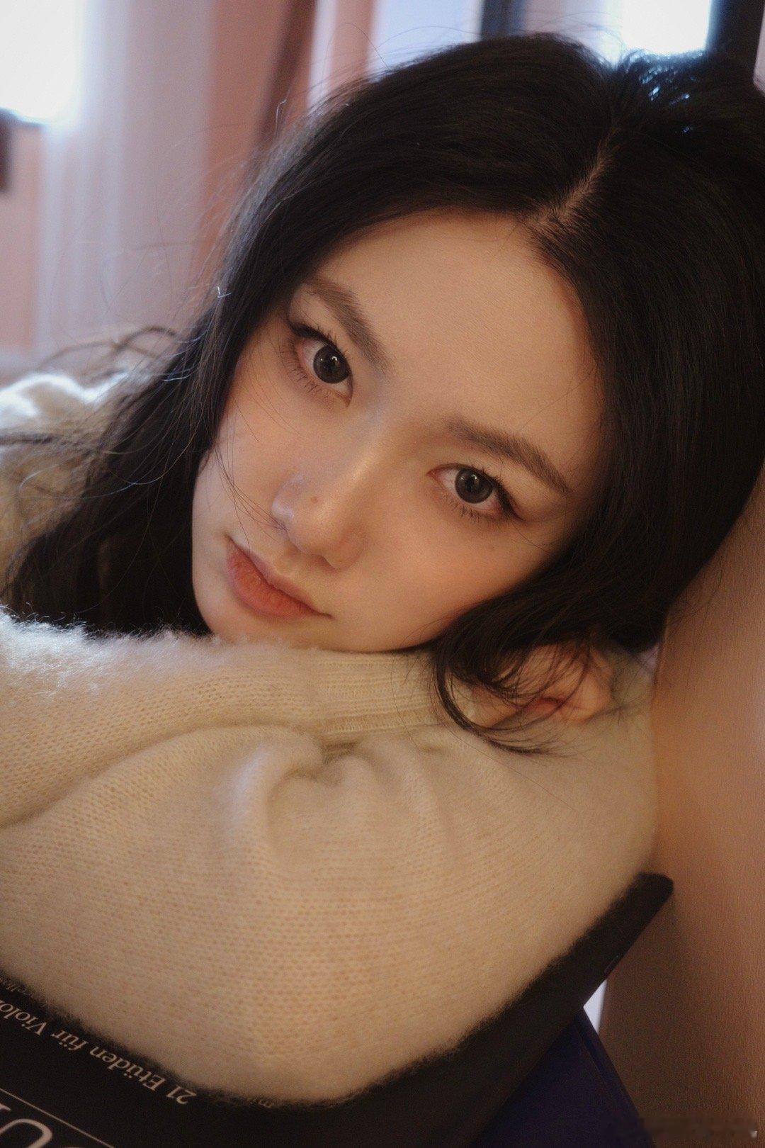 一袭红衣裹着冬日暖意,麻花辫添了几分随性慵懒,清冷眉眼撞上火红裙装,是冷冽与炽热