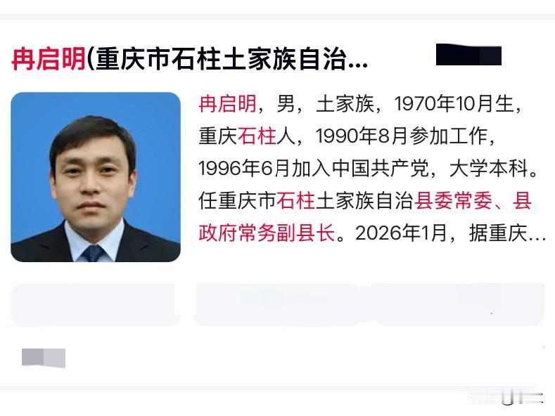 重庆市石柱县的冉启明上了热搜!他是重庆石柱本地人,拥有本科学历,他长期在家乡工作。 1990年他从四川省石柱土家族自治县师范学校毕业后,在四川省石柱土家族自治县石家乡凤凰小学开始了教学生涯,1997年他当上了重庆市石柱土家族自治县枫木乡小学的校长,4年后他转入行政工作,此后工作顺风顺水,后来成为了重庆石柱县的第一副总。 作为“70后”,他今年已经55岁了,本应该在岗位上发挥积极作用,可惜他没有坚守住初心,做了不该做的事,现在受到了应有的代价!