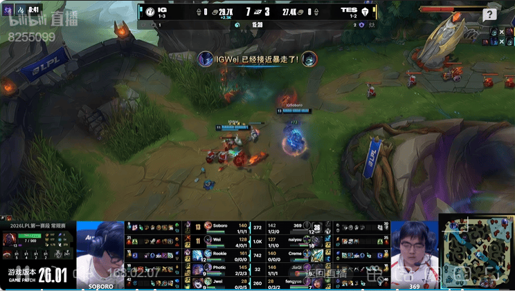 虎扑01月21日讯IG蓝色方,TES红色方
