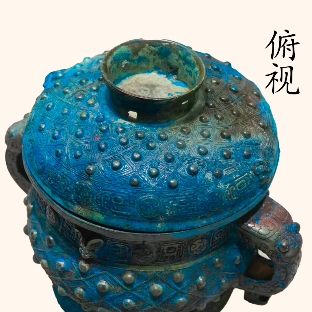 青铜器在古时被称为“金”或“吉金”,是红铜与其他化学元素锡、铅等的合金,刚刚铸造完成的青铜器是金色或金属银色,但因青铜器埋藏在地下因时间等因素而产生锈蚀后常变为青绿色,少数呈红、蓝、紫等色。,被称为青铜。 今介绍的这件西周早期菱格乳丁纹带盖簋,因某些自然原因造成呈现出耀眼的蓝色,而这种蓝色青铜器从古至今备受人们的喜爱。 器物名称:菱格乳丁纹带盖簋(博物馆展牌名称:曾侯带盖簋)。 时代: 西周早期。 收藏单位: 随州市博物馆藏品 。 器物编号:M111:62。 器物规格: 通盖高23.3厘米,带耳宽29.3厘米,捉手径8.3厘米,器口径21.6厘米,腹深12厘米,圈足径17.1厘米,圈足高3.7厘米,带盖重4425克 。 出土地点: 2013年湖北随州叶家山曾侯家族西周早期墓地M111号出土。 器物介绍: 器形:带圆形盖,盖面隆起呈弧面,盖顶置有一个喇叭状捉手。器为圆口,沿外侈,方唇,束颈,弧壁,圆鼓腹略下垂,圜底,高圈足斜直。腹部有两个对称的兽首形半环耳,耳下有勾形垂珥。 纹饰:盖面及腹部饰以云雷纹打底的菱形方格乳丁纹,盖缘及颈部饰夔纹、五芒涡纹相间的纹饰带一周,两耳间纹饰带中部各有一浮雕小兽首。圈足亦饰夔纹、五芒涡纹纹饰带一周,其纹样与盖缘相同。耳、垂珥饰阴线刻云纹。 铭文:盖内、器内底铭文相同,均为二行六字,自右至左释文为:“曾”侯乍(作)宝樽彝,“侯:字反书。 作者:九芒考古。 参考资料: 杜廼松:《中国古代青铜器小辞典》,文物出版社,1980年。 朱凤瀚:《古代中国青铜器》,南开大学出版社,1995年。 马承源:《中国青铜器》,上海古籍出版社,1988年。 《江汉考古》2020年第期:湖北叶家山M111发掘简报 湖北省文物考古研究所 随州市博物馆。 青铜器 博物馆 考古 蓝色锈迹青铜器 蓝色 文物 艺术