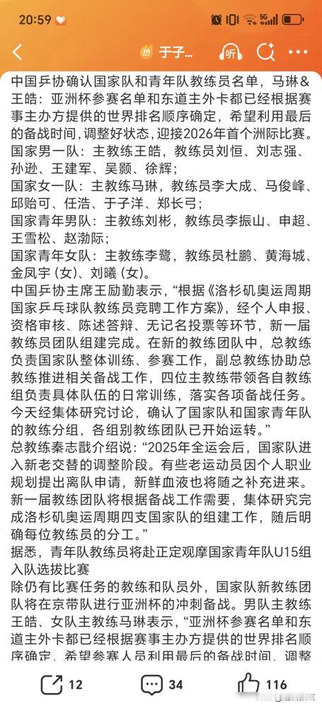 28个岗位,43人抢破头。 国乒教练竞聘结果刚出。最受关注的,不是谁上去了,而是谁“没出现”。王励勤。 外界猜他“缺席”关键会议,是不是边缘化了?结果一翻名单,他是坐在主席台那个。中国乒协主席,兼体育总局乒羽中心副主任。这次竞聘,他一手推动。 33人陈述,无记名投票。他说,传承是根基,创新是动力。总教练秦志戬上,接棒李隼,稳。副总教练肖战上,专攻双打,新。洛杉矶奥运要拼6块金牌,双打权重变了,打法就得变。 网友之前还操心孙颖莎、王楚钦谁主管。现在看,格局大了。秦志戬说,队伍新老交替。肖战盯着双打配对。王励勤在幕后,搭好了台。 真正的权力,是搭建舞台,而不是自己站上去。