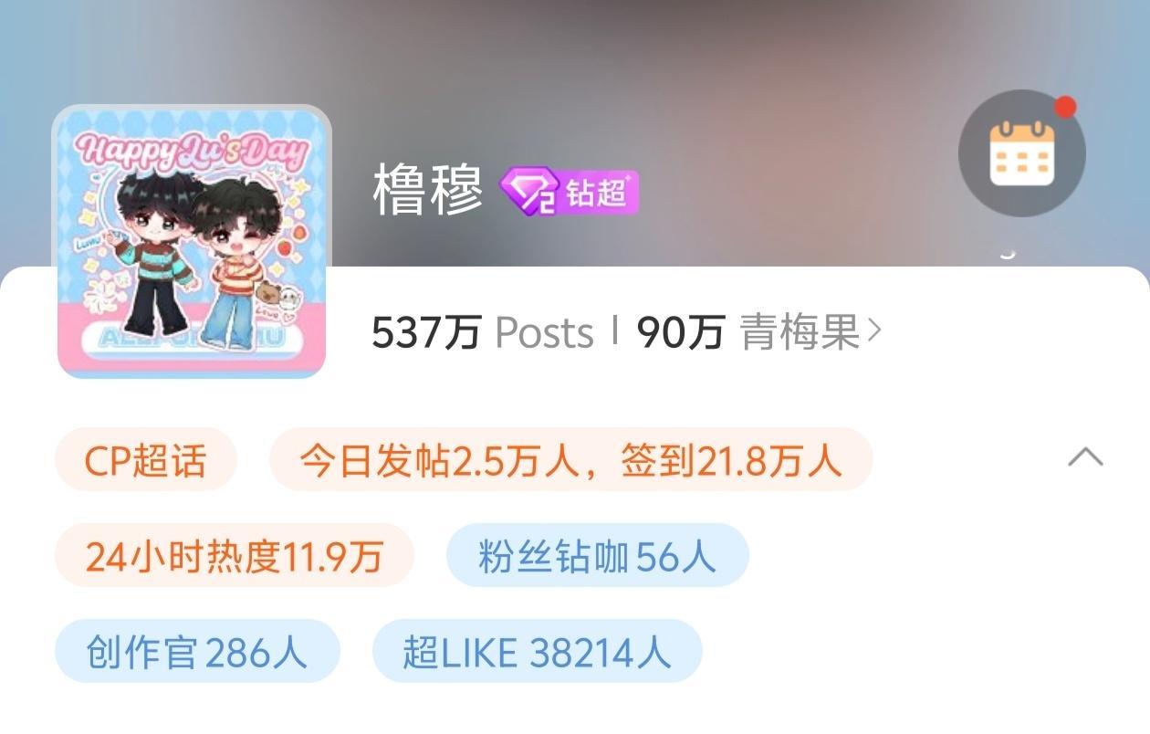 橹穆超话90w粉丝了,青梅果破100w指日可待