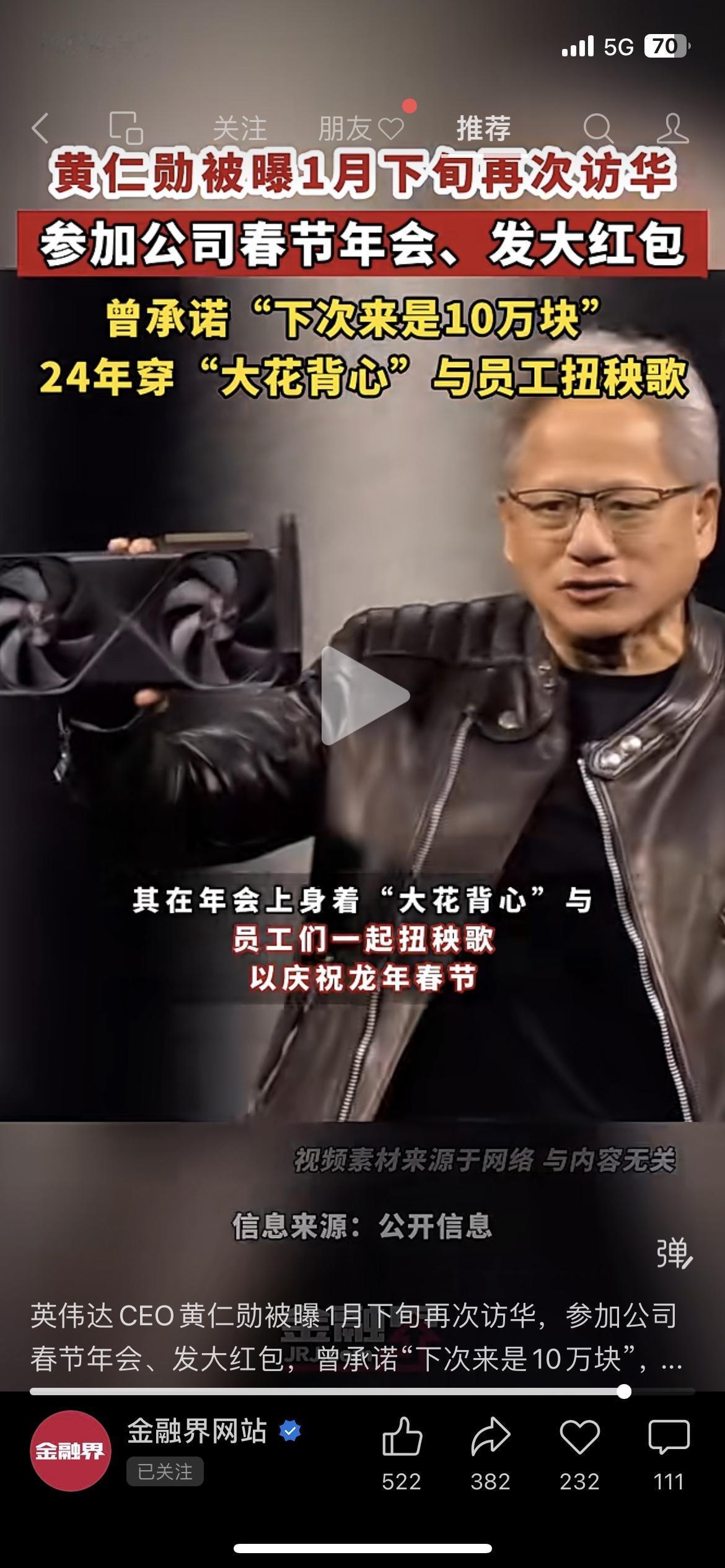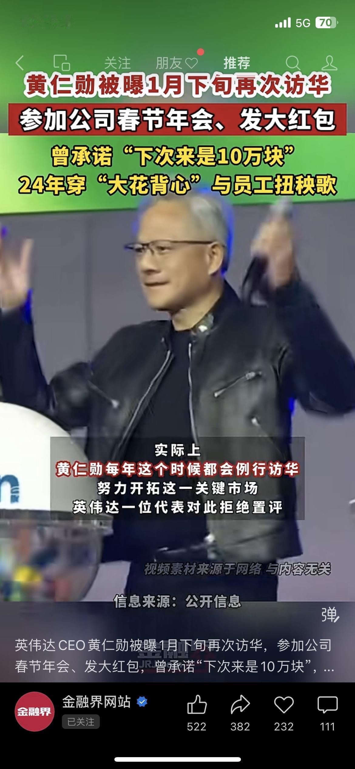 黄仁勋又来中国发福利了!承诺下次给员工发10万年终奖,去年还穿花背心扭秧歌!英伟达靠中国市场赚麻了,这波AI行情还能火多久?别追高个股,半导体ETF更靠谱!你会拿住还是止盈? 黄仁勋访华
