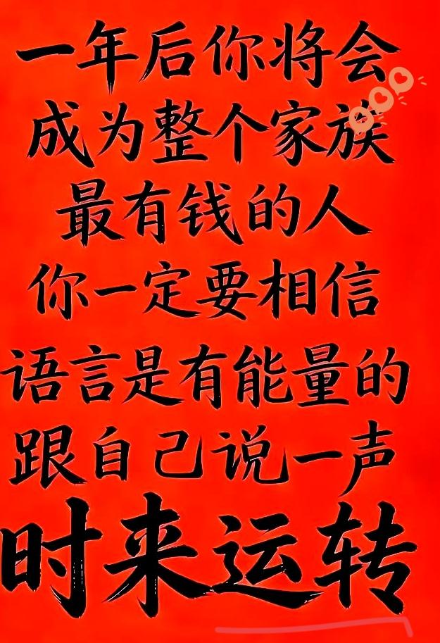 你一定要相信 一年以后 你会成家族里最有钱的人 跟自己说声 时来运转 这份默念不是空喊口号,是给低谷的自己最硬的底气。所谓莫名其妙的暴富,从不是凭空而来的运气,而是信念攒够了力量,吸引力法则的本质,从来都是心有所向的坚定,让你眼里有光、脚下有路,慢慢靠近想要的生活。 别不信这份心念的魔力,它能让你熬过难走的路,扛过难熬的日子,让你在平凡的日子里保持努力,在迷茫的时候守住期待。你心里的财念有多坚定,财富就会离你有多近,熬过低谷,财门自开,属于你的财富,终会奔你而来。 现在就跟自己说一句时来运转,你敢坚信这份好运会如约而至吗?