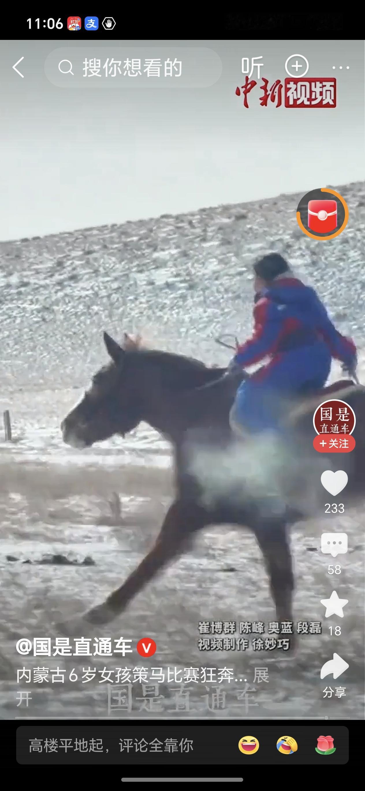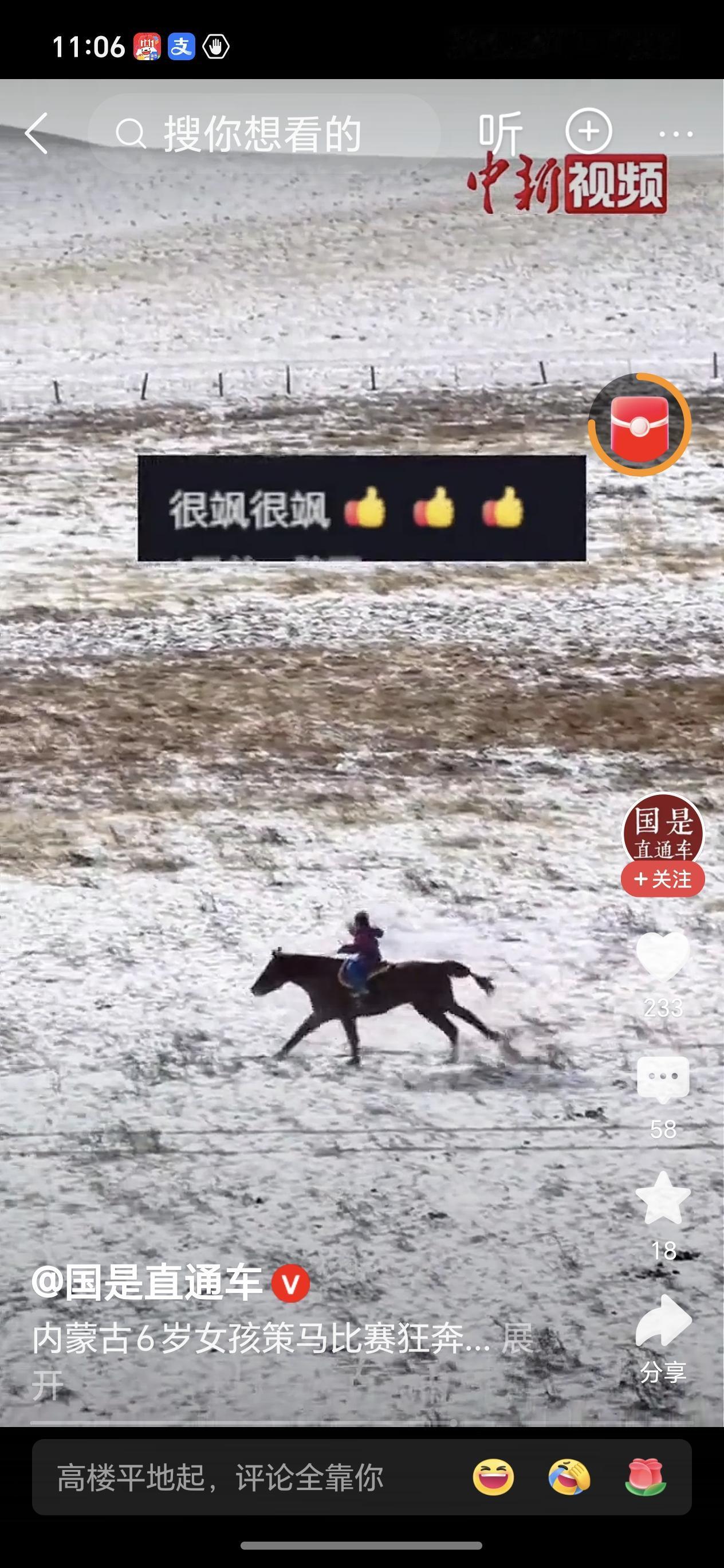 大多数6岁的小女孩,还需要大人的呵护,而这个小女孩不愧为马背上民族的后代,果敢坚毅令人佩服,太了不起了,为她点个大大的赞👍