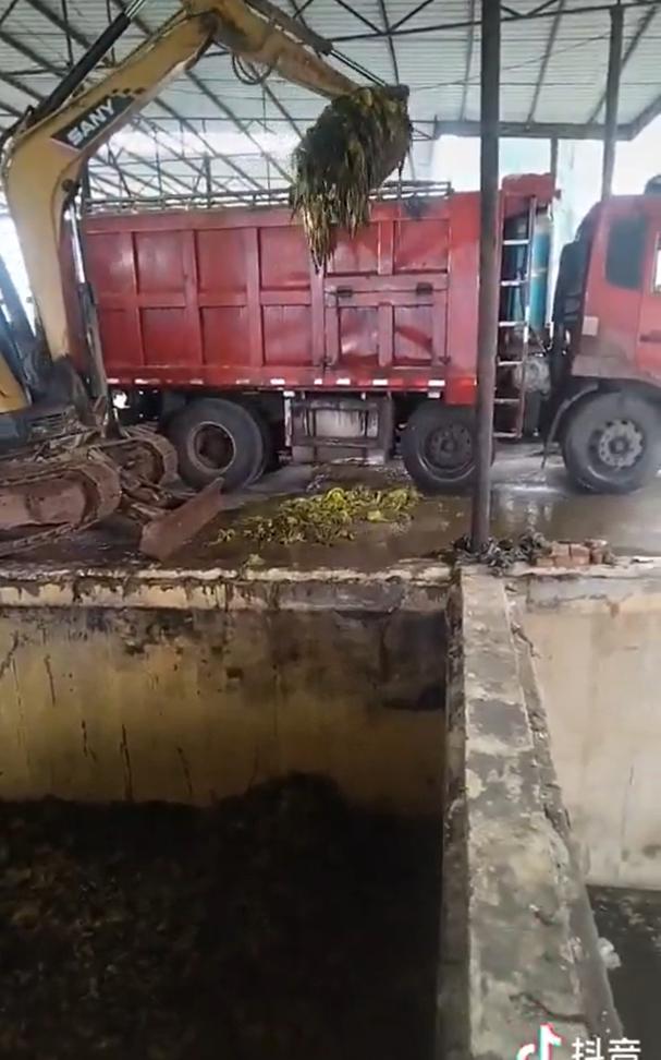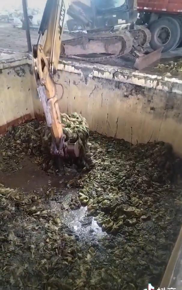 1月16日,四川省资阳市,一位网友拍到某企业腌制咸菜的池子,直接用挖掘机装入 自卸翻斗车运走。不细看还以为是装垃圾。
