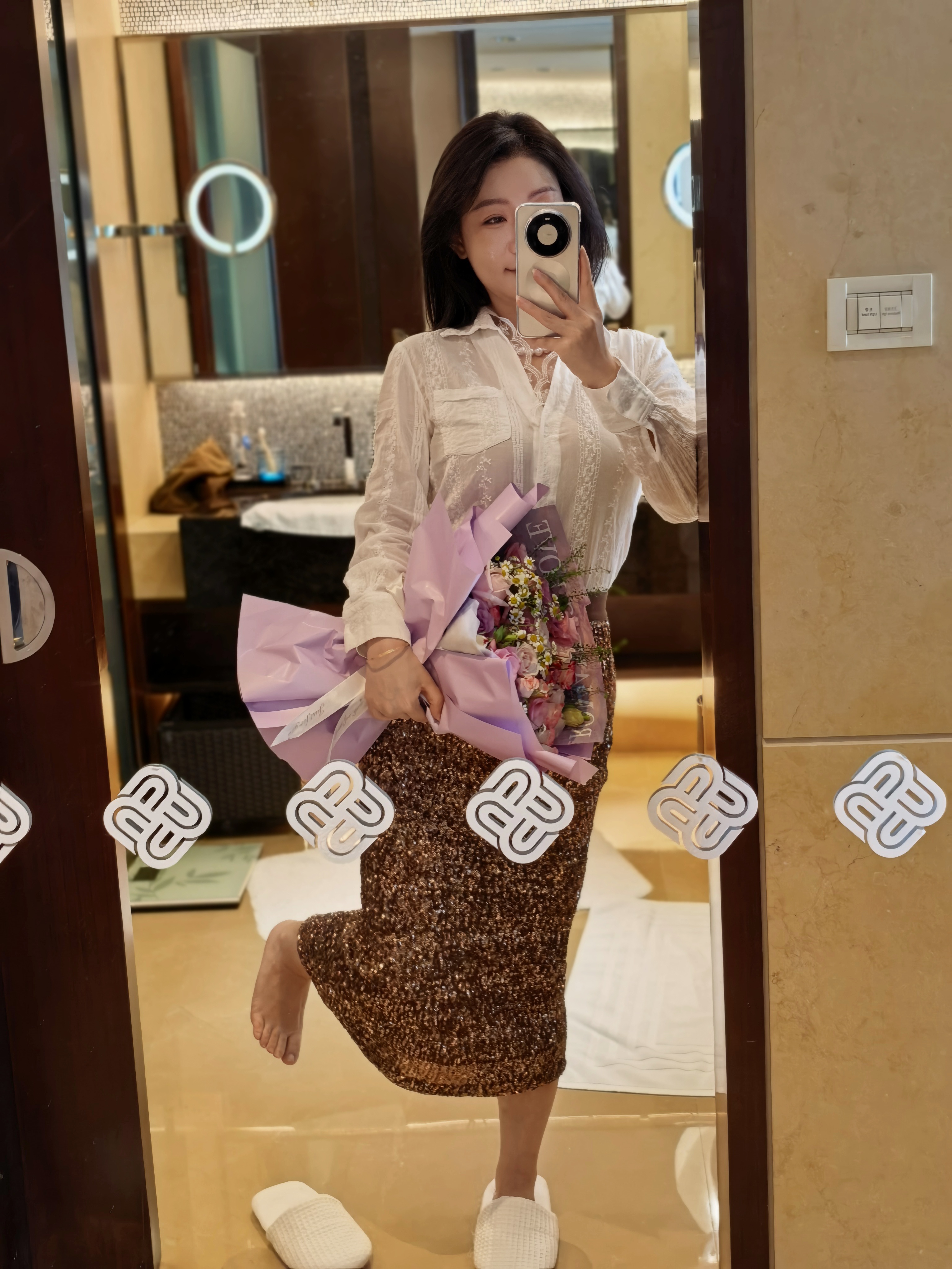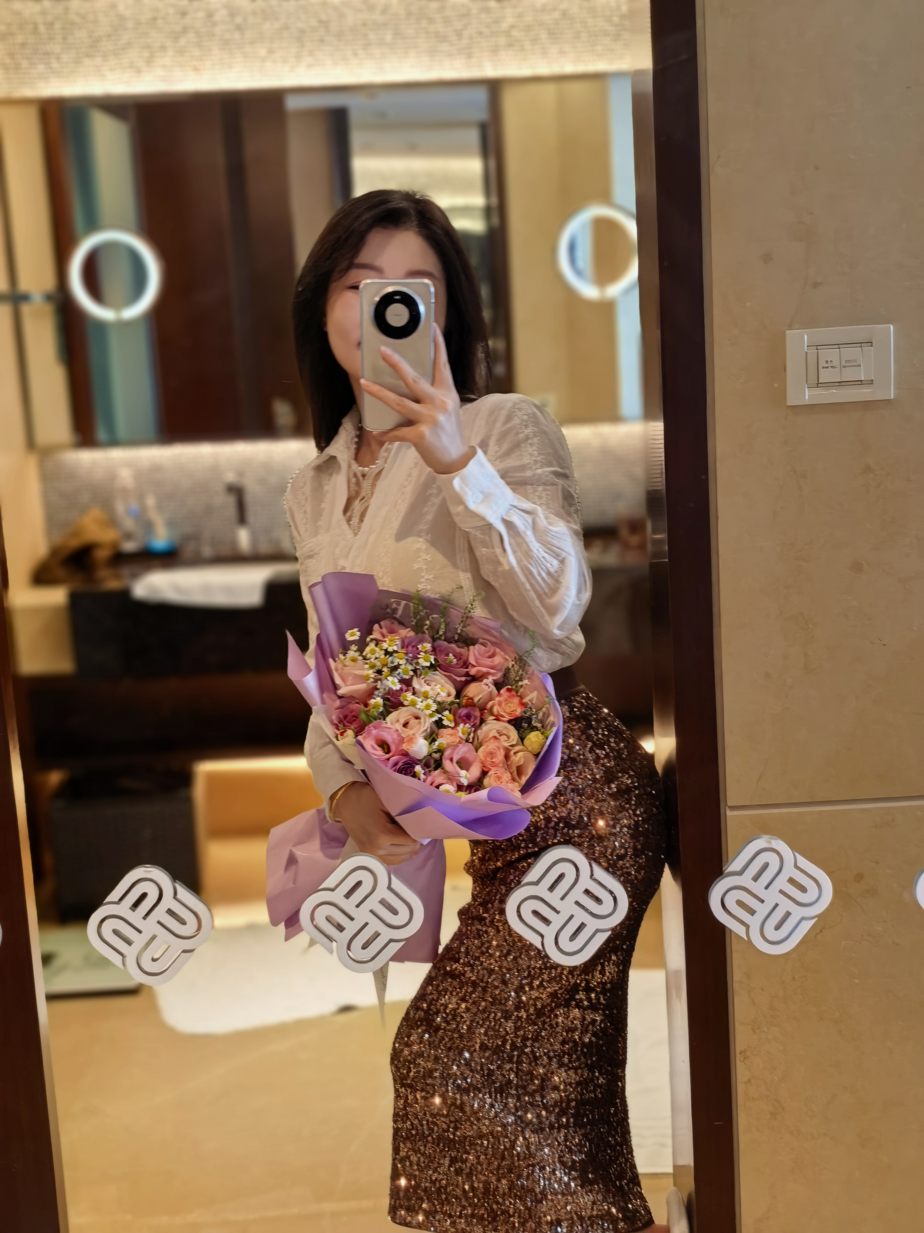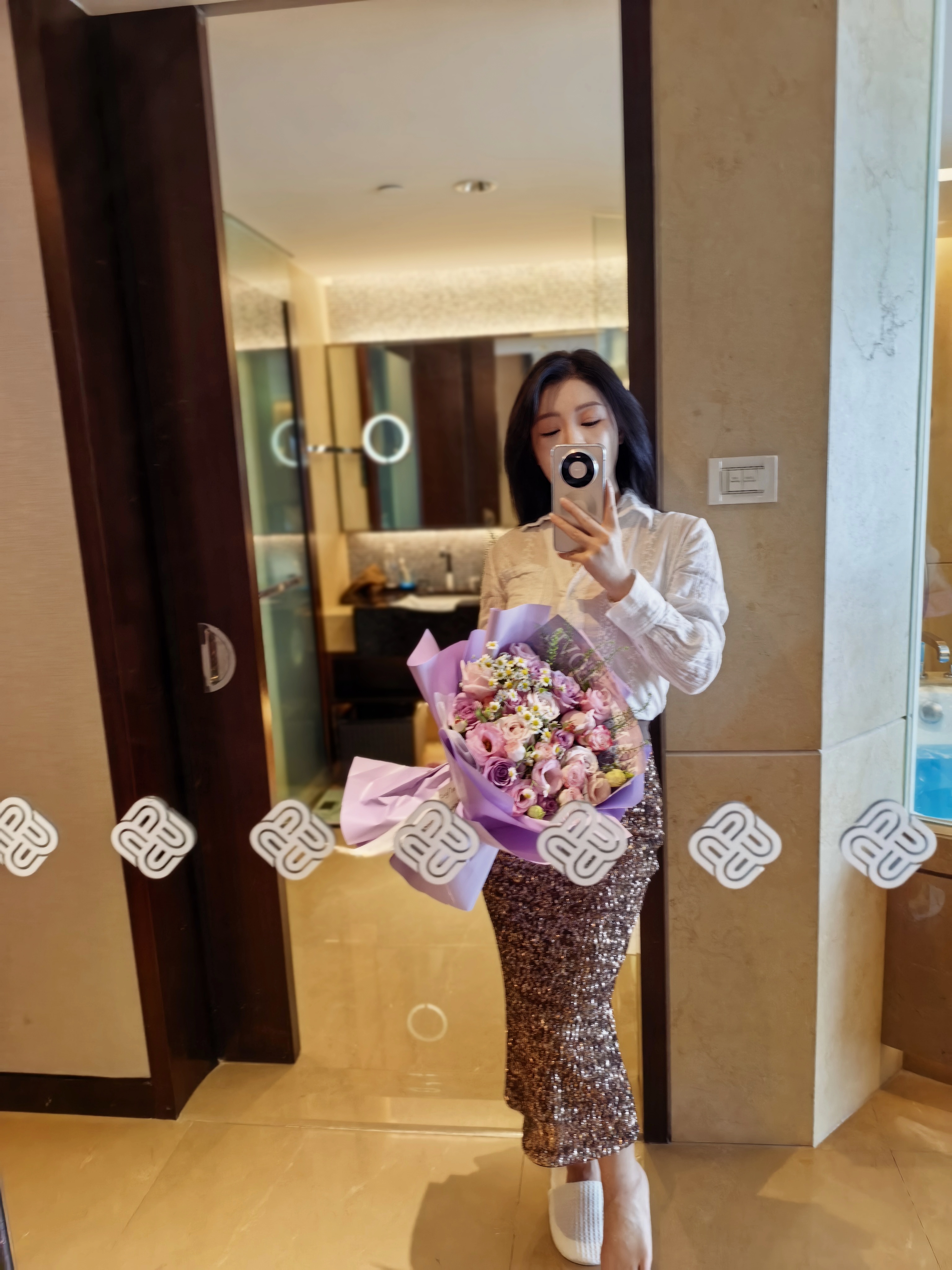 嘿~今天我选的道具鲜花粉紫玫瑰,喜欢吗?