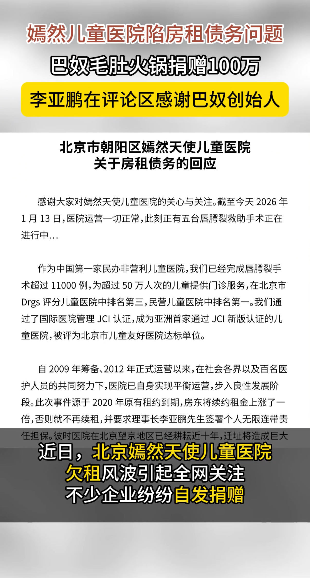 李亚鹏感谢巴奴捐款 巴奴慷慨解囊,向嫣然医院捐100万助力公益,李亚鹏亲自到评论区致谢“老杜”,这波操作太暖啦!满满的正能量,必须点赞!李亚鹏在评论区感谢巴奴创始人