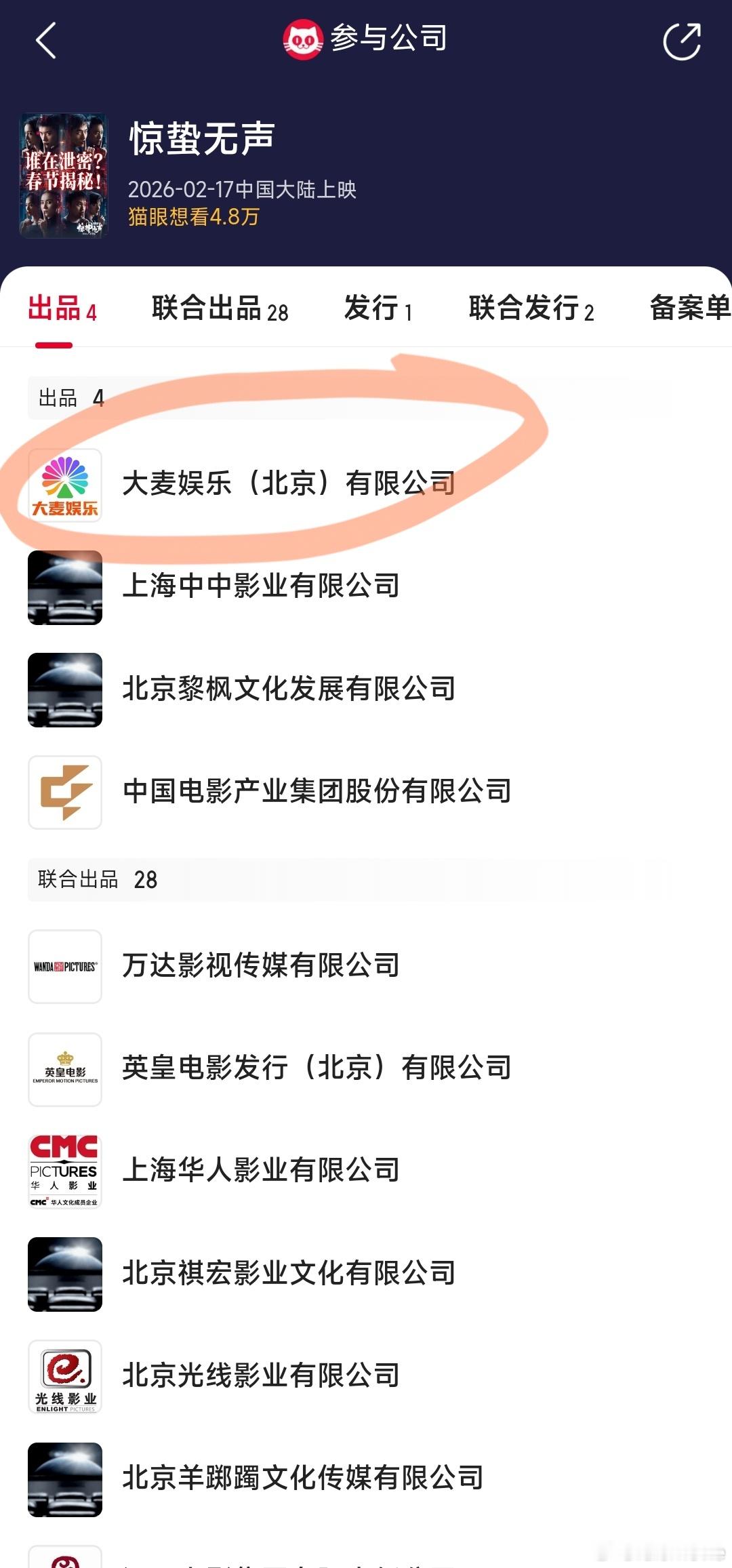 今年春节档是阿里的天下,要打一个翻身仗了吗?《镖人》《飞驰人生3》《惊蛰无声》都是主投,《熊出没》是联合出品。《镖人》《飞驰人生3》都没有联合出品,估计没向二级市场卖,应该觉得肯定赚钱,《惊蛰无声》早早就分摊成本了。惊蛰无声定档4部影片定档2026春节档跨年电影愿