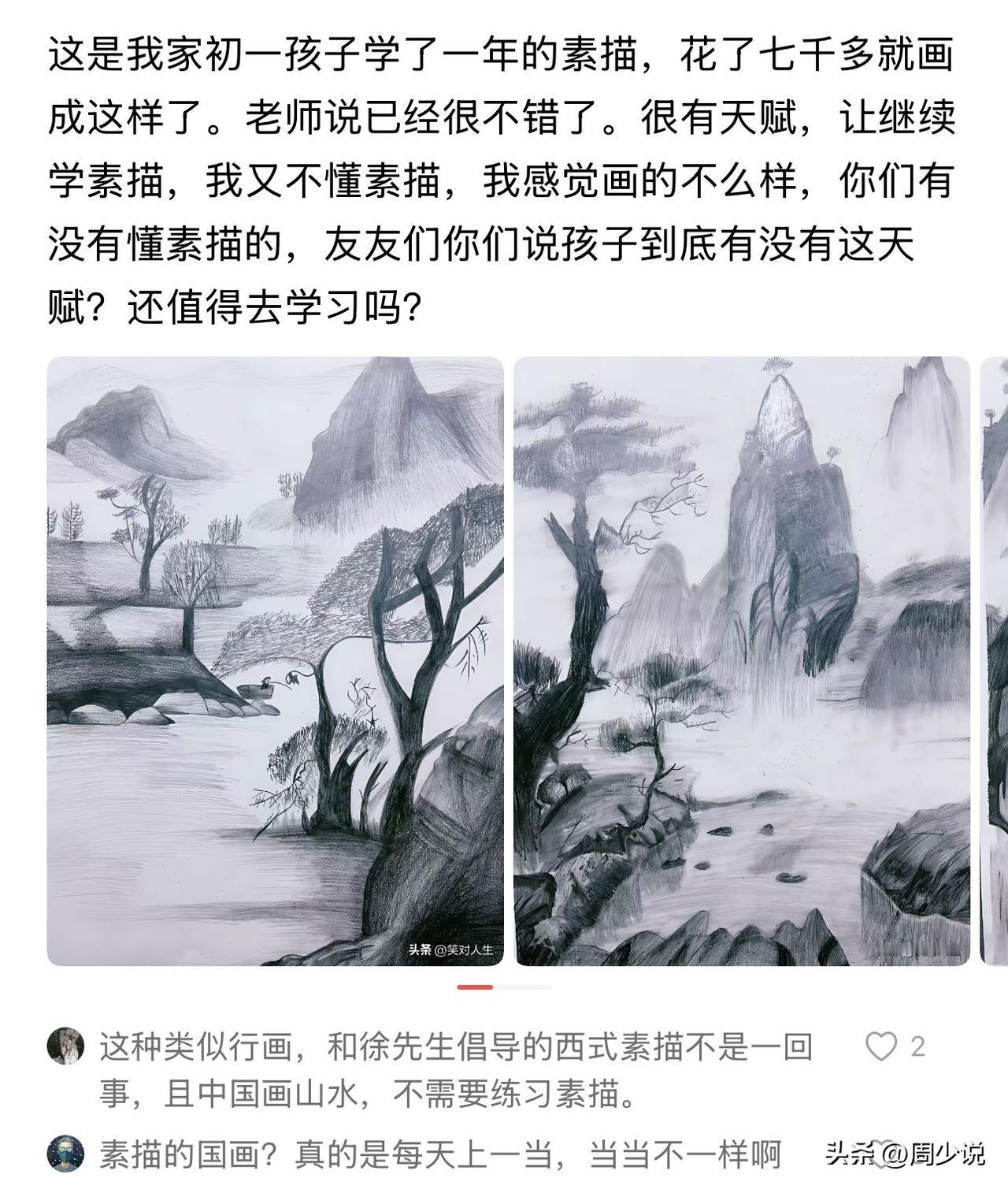 这真是是冤大头啊!初一交了七千多学费,学了一年素描,就画成这样,老师竟然还觉得不错,还夸赞很有天赋,这真是有些离谱了。作为一个科班出身的,这哪是画的素描,有些昧没良心了吧。网友总结的很精辟,素描的国画,真是每天上一当,当当不一样。周少真心奉劝这位家长,别当冤大头了,果断放弃……#寻美三湘# #长沙新朋友#