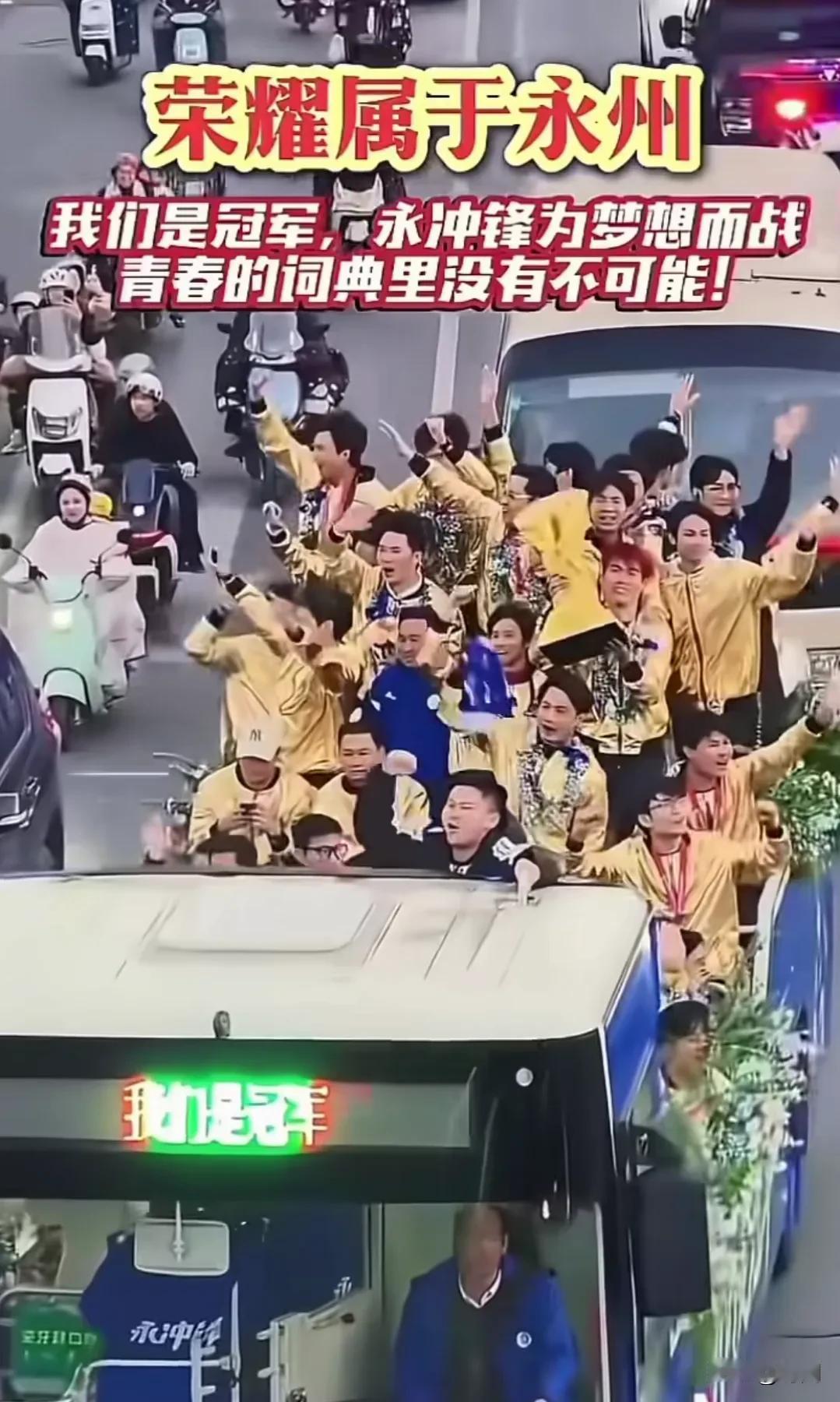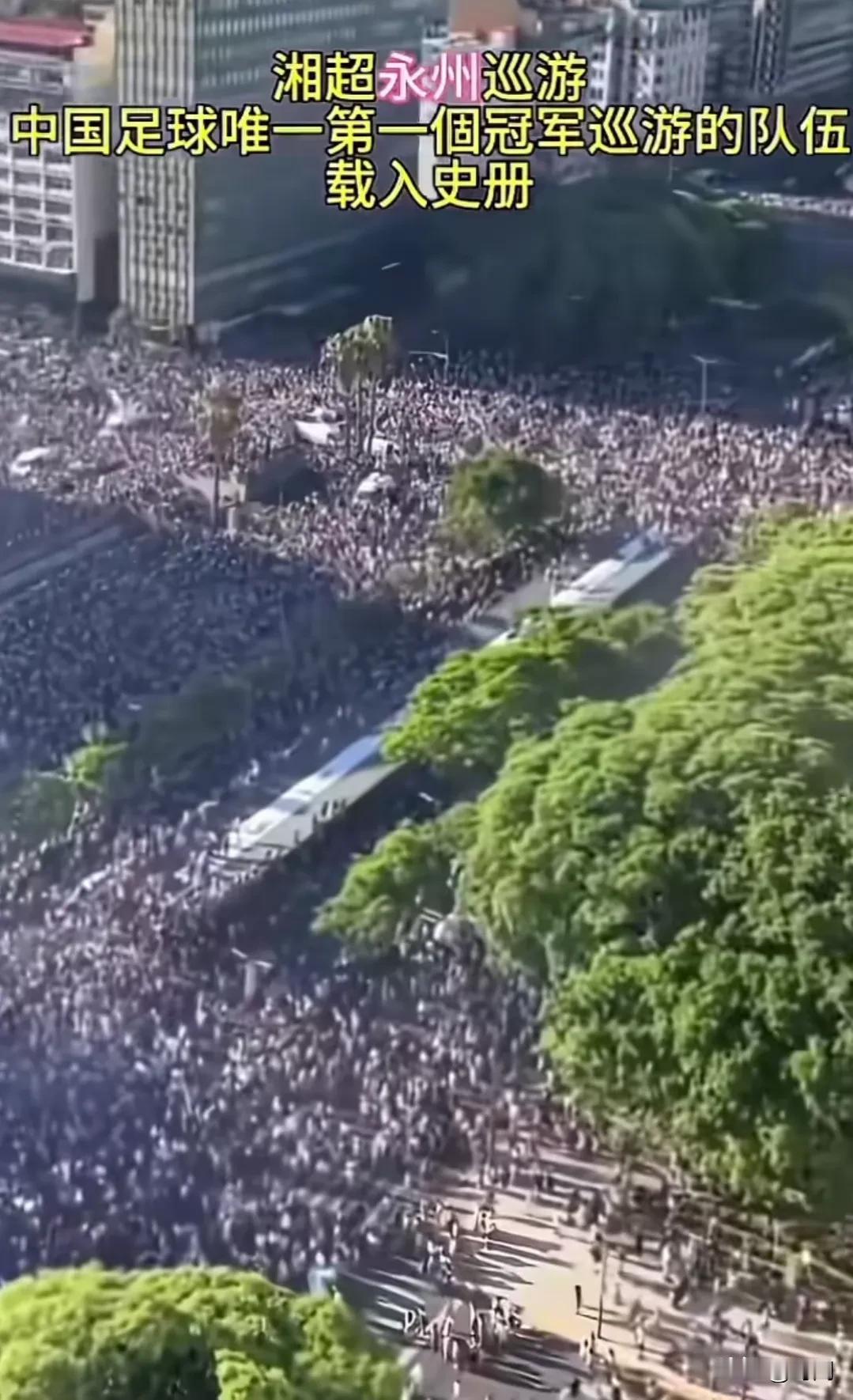 场面堪比欧冠冠军,湖南省2025年湘超冠军队永州举行宏大的巡游活动!据了解,活动在2025年12月28日14:00—17:30举行,冠军队永州队在市区举行球队大巴巡游,是中国足球目前唯一举办的一个球队,参与活动的民众达近10万人。 当天永州市市区可以说的堪比欧冠冠军队巡游活动,一眼望不到头的人,巡游街道由公安、交通、应急、救护等部门提前规划,活动完美结束,成为永州人民心中永恒的骄傲。 湘超冠军永州队举行巡游活动
