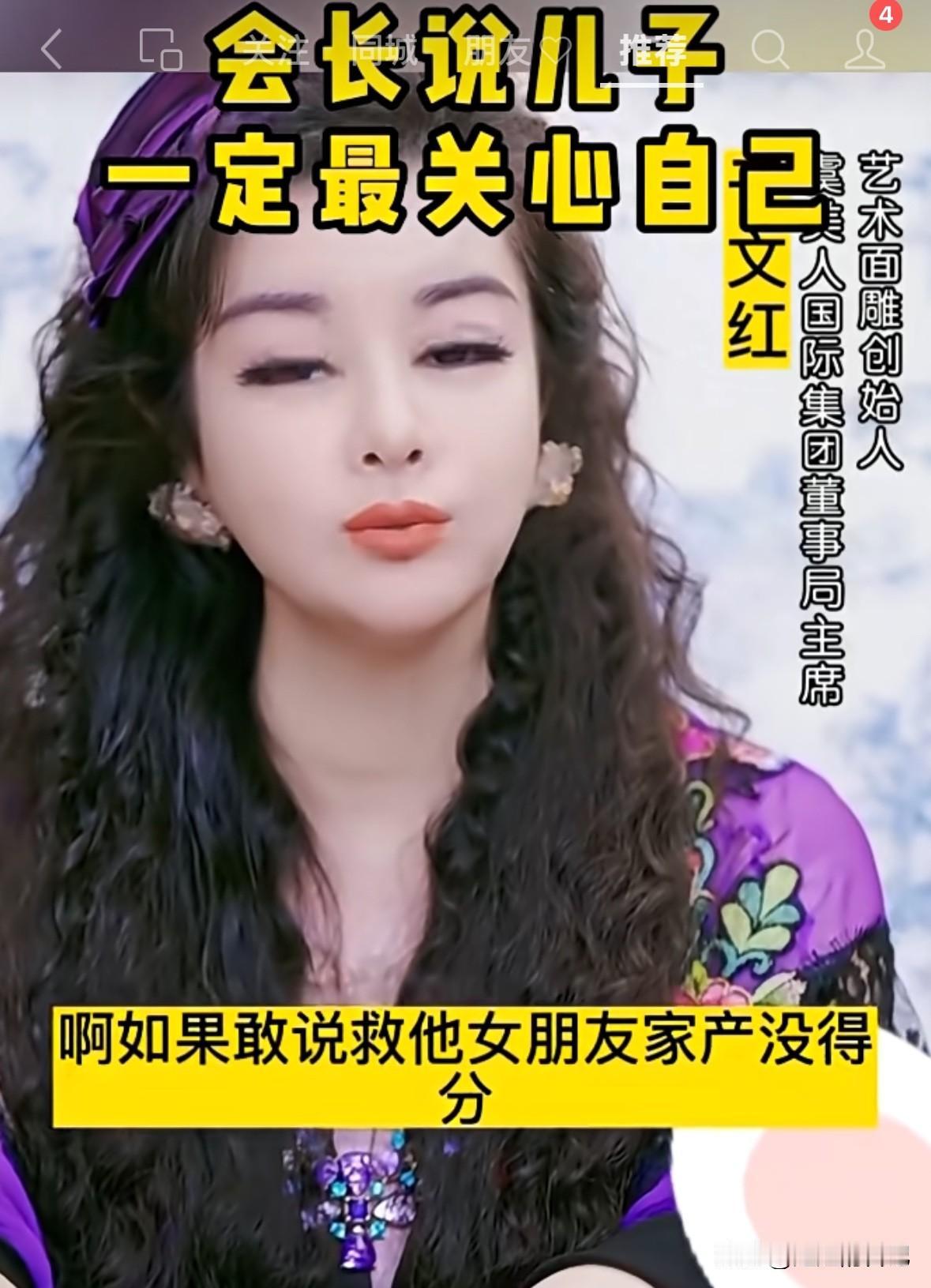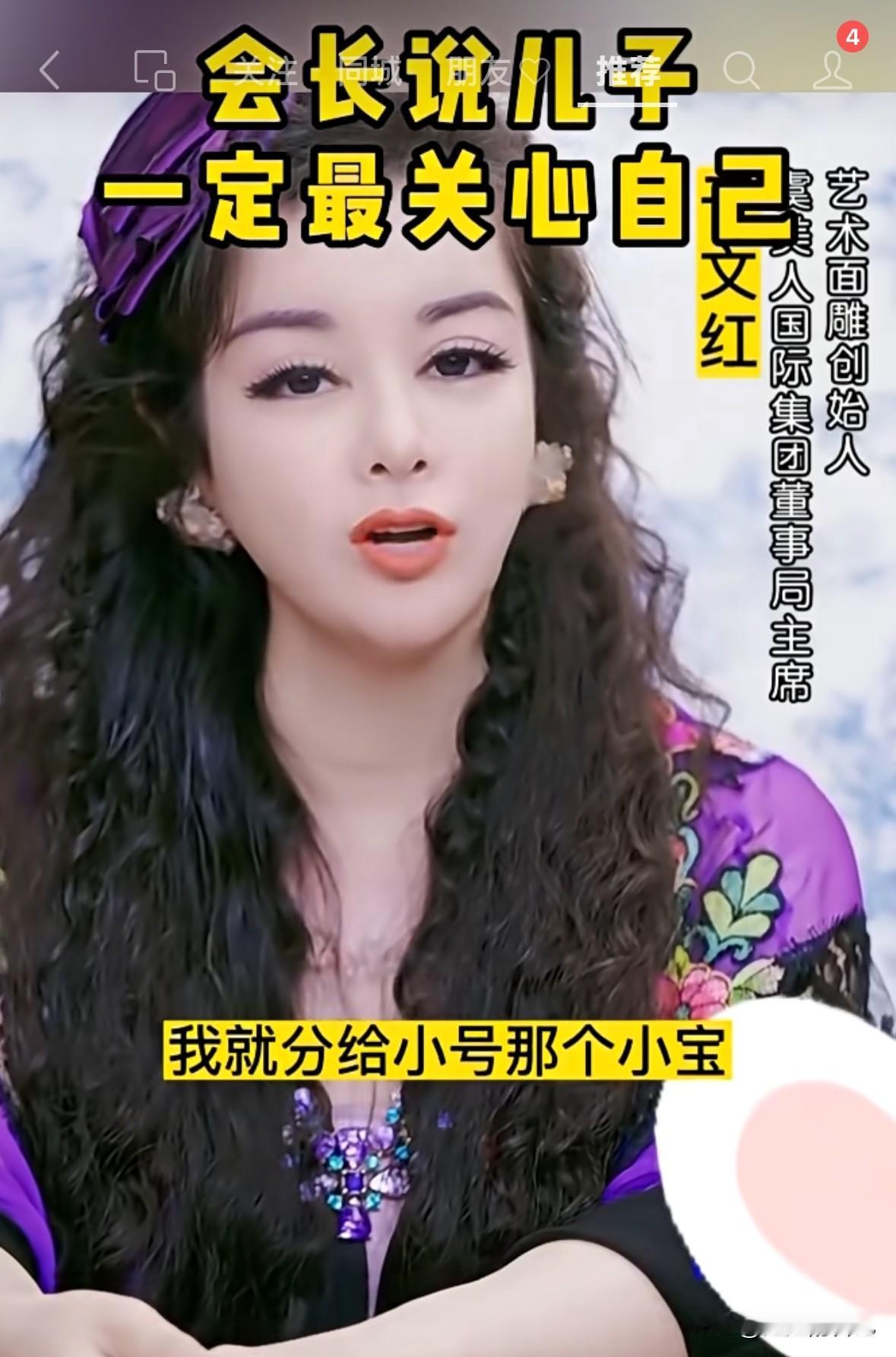 于文红之前视频,她说“我就教育我儿子,必须爱我,如果我跟她老婆都掉进水里,他一定要像小王总一样,说救他妈妈,他要敢说先救他媳妇,我的家产他就没的分,我就都留给小号小宝,还有新号罗兰多”。 这个不就是口头承诺么?翻脸不认人,看罗兰多没有价值了,一脚踢出局。 还整天表达不正确的价值观,传递的思想就是,女人要加她粉丝团,做她的徒弟,保证你一年赚500万,有钱就可以找小几十岁的帅哥。 这样的忍能发财,就感觉这个财富分配机制出现了问题,大家认为我分析的对不对呢?