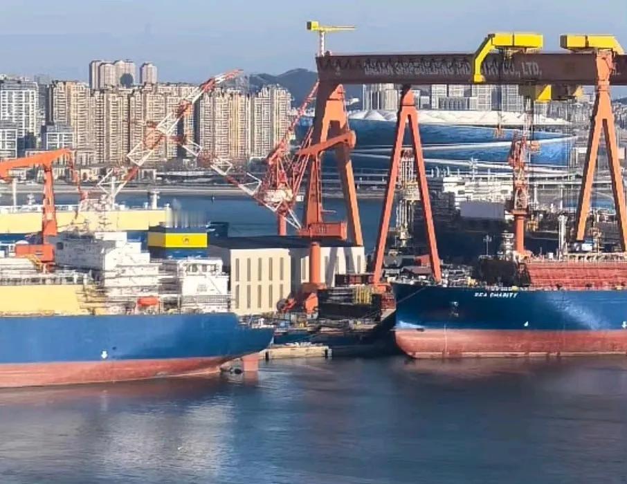 这张由外媒于2026年1月10日发布的卫星影像显示,沪东长兴岛造船厂船坞内的忙碌