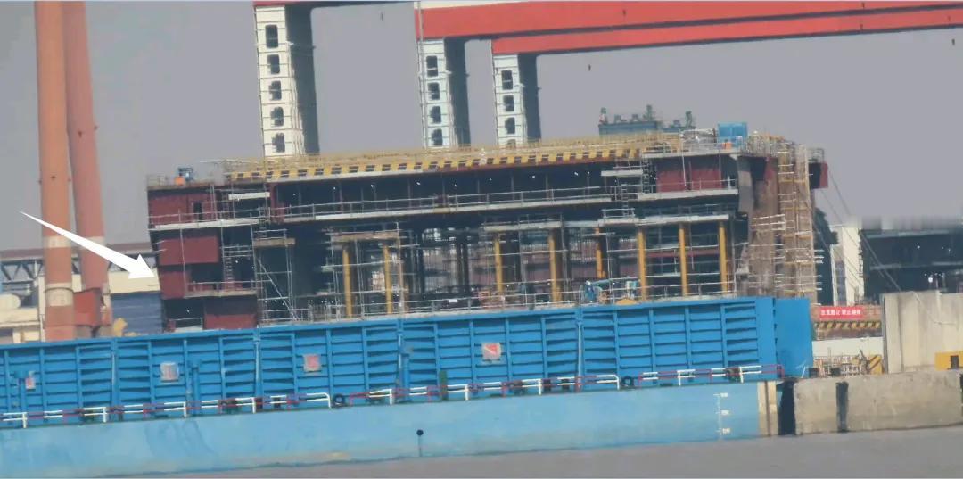 004已经开始搭建机库了。 感觉春节前能合拢 期待年底能下水