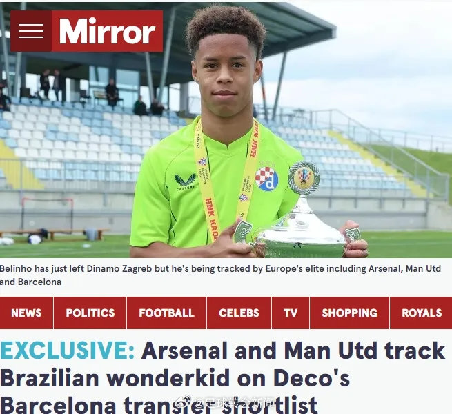 镜报和伦敦足球记者RT发文,阿森纳和曼联也加入了众多欧洲球队对拉斐尔-贝利尼奥的争夺。17岁的贝利尼奥是一名巴西球员,同时持有克罗地亚护照,这名新星最近刚刚从萨格勒布迪纳摩转会加盟萨格勒布库斯托什亚足球俱乐部,而镜报指出,贝利尼奥被普遍认为是同龄人里世界上最好的球员之一。据悉,阿森纳、曼联、巴萨和皇马都在密切关注贝利尼奥,多特蒙德同样对这名攻击型中场很感兴趣。