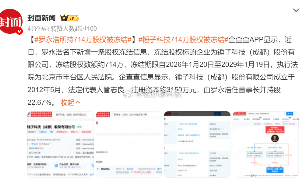 罗永浩所持714万股权被冻结当前是法治社会,以前那一套行不通了罗永浩本身也不干净,身上的事儿很多,只不过以前有价值,所以才能一直当网红罗永浩树立了那么多的仇人,真要想打罗永浩,就查一查罗永浩现在的问题用正大光明的手段就能把老罗打倒,毕竟这些都是老罗真真实实要面临的事情