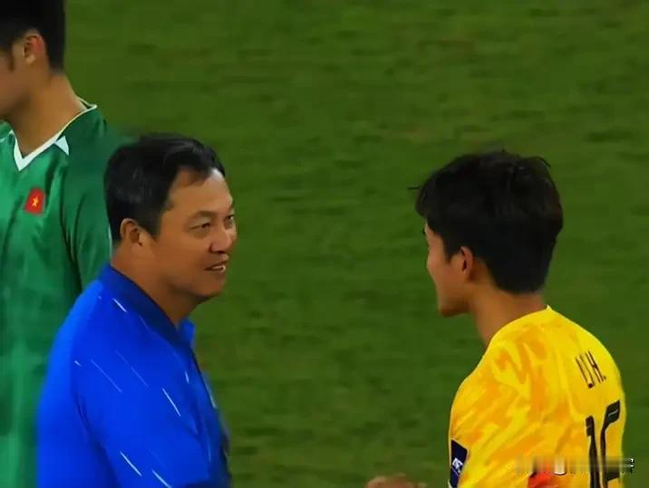 藏不住的宠溺和欣赏,U23国足和越南队的比赛结束后,韩国名宿越南U23守门员教练李云在主动和李昊寒暄,欣赏之情尽显! 作为韩国国脚李在明的实力不容小觑,曾经代表国家队出战132场,参加过四届世界杯,是亚洲足坛颇具影响力的守门员,在这场比赛中李昊继续之前神勇表现最终零封对手实现晋级,赛后李云在的这一行为也是向外界表明,只要你的实力足够强,就会赢得尊重和褒奖,就算是长期对中国足球嗤之以鼻的韩国人,也会低下他高贵的头颅。 所以本人建议这支U23球队可以整体上升到国家队层面,至于目前邵佳一带领的那支老态龙钟的“痞幼子”直接可以宣布解散了![作揖][作揖][作揖]