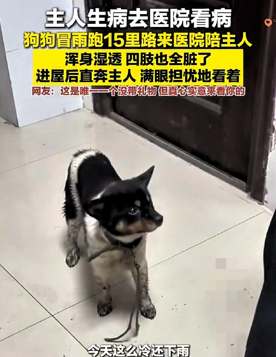 这只冒雨跑15里路去医院找主人的小狗,才是今年最戳心的“治愈系顶流”。 你看它浑身湿透、爪子沾满泥点的样子,哪是什么宠物,分明是把主人刻进生命里的家人。 很多人总说“真心难寻”,可这只小狗用最笨拙的方式告诉我们,真心从来不需要物质证明,它只是在你需要的时候,不顾一切奔向你。 我们总在社交里计算利弊,在关系里衡量得失,却忘了最纯粹的陪伴,往往来自不会说话的小生命。 它不懂什么是15里路的疲惫,也不懂雨天的寒冷,只知道“主人在那里,我要去陪着”。 这份不带任何目的的奔赴,比所有刻意的讨好都更动人。 你有没有被这样的瞬间暖到过?评论区聊聊你和毛孩子的故事吧~