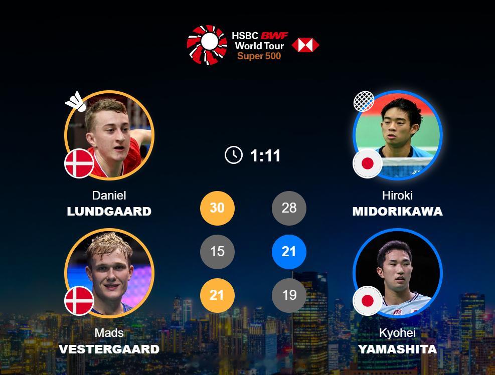 男双 1/8赛 伦加德 / 麦斯 30-28 15-21 21-19 绿川大辉 / 山下恭平2026年印尼羽毛球大师赛