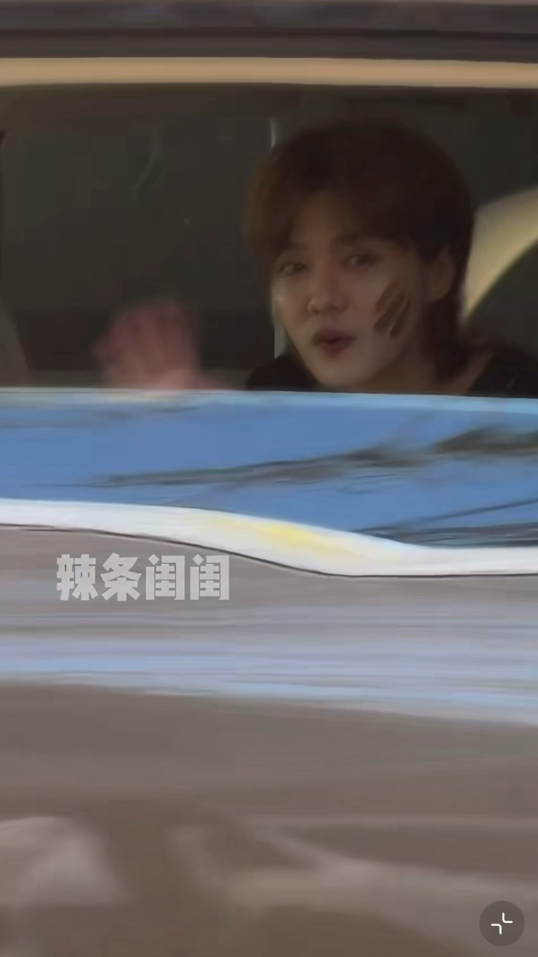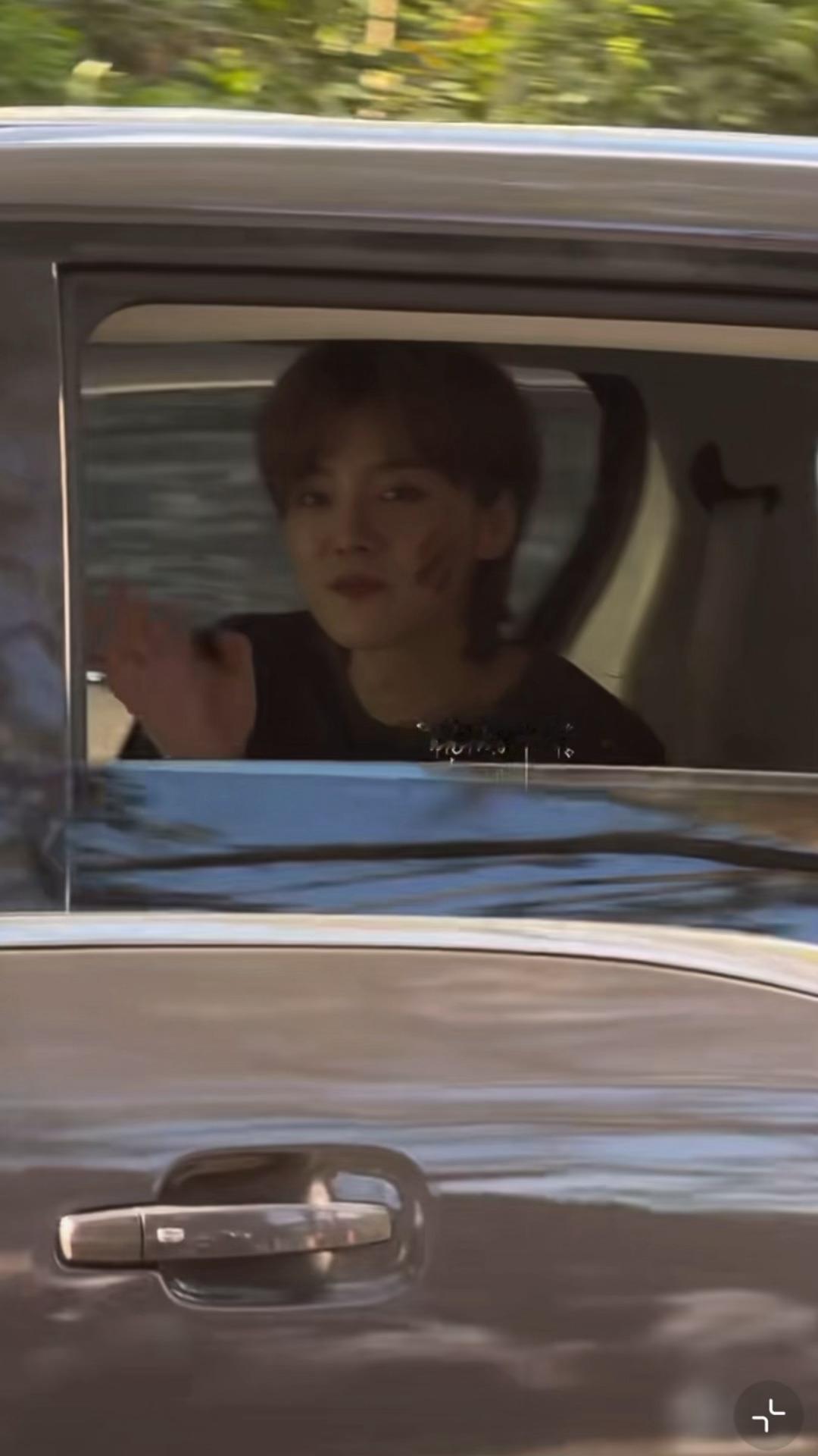 靠到窗户这边给粉丝打招呼的迷彩小鹿鹿晗靠到车窗边跟粉丝打招呼