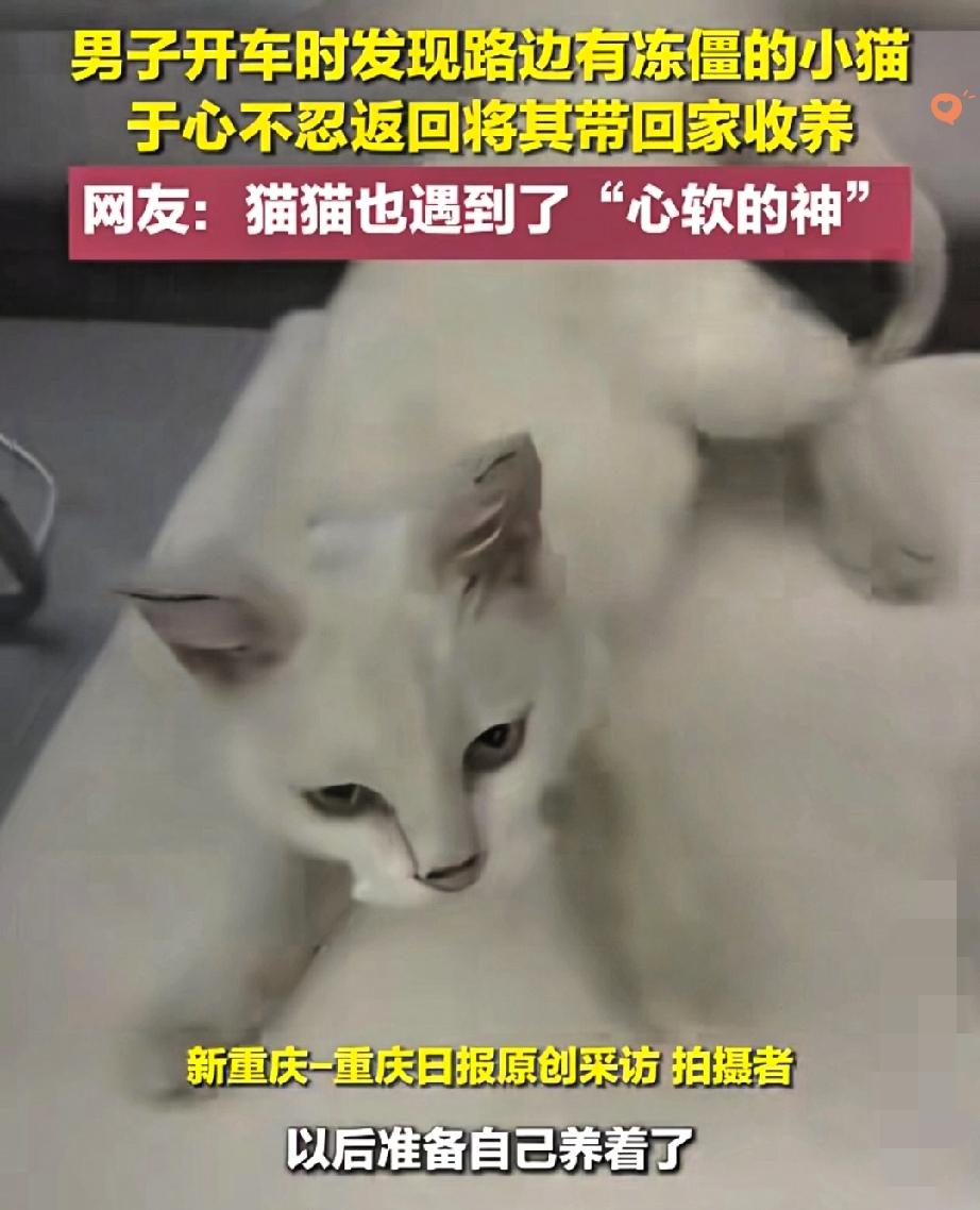 吉林零下二十几度的街头,撞见这只冻得奄奄一息的纯白小猫,真的瞬间揪紧了心! 谁能想到,不过是开车途中的一眼,父子俩愣是掉头折返,只为救下这只在车底瑟瑟发抖的小生命。 这哪里是简单的恻隐之心,而是人对弱小最本能的温柔,更是刻在骨子里的善良选择。 小猫乖乖不反抗的模样,仿佛也懂这是来渡它的人,这份双向的信任,比任何画面都戳人。 给小猫洗热水澡、穿小衣服,规划着体检打疫苗,这份细致的呵护,让冰冷的冬日多了滚烫的暖意。 我一直觉得,善良从不是刻意的表演,而是下意识的伸手,对弱小的珍视,从来都不是小事,而是一个人最珍贵的底色。 所谓的好运和鸿福,从来都不是凭空而来,而是你对世界释放的善意,最终都会化作温柔回馈给你。 爱出者爱返,从来都不是一句空话,而是实实在在的生活真相。 你有没有过心软伸手帮助小动物的瞬间?评论区聊聊你的暖心经历吧~