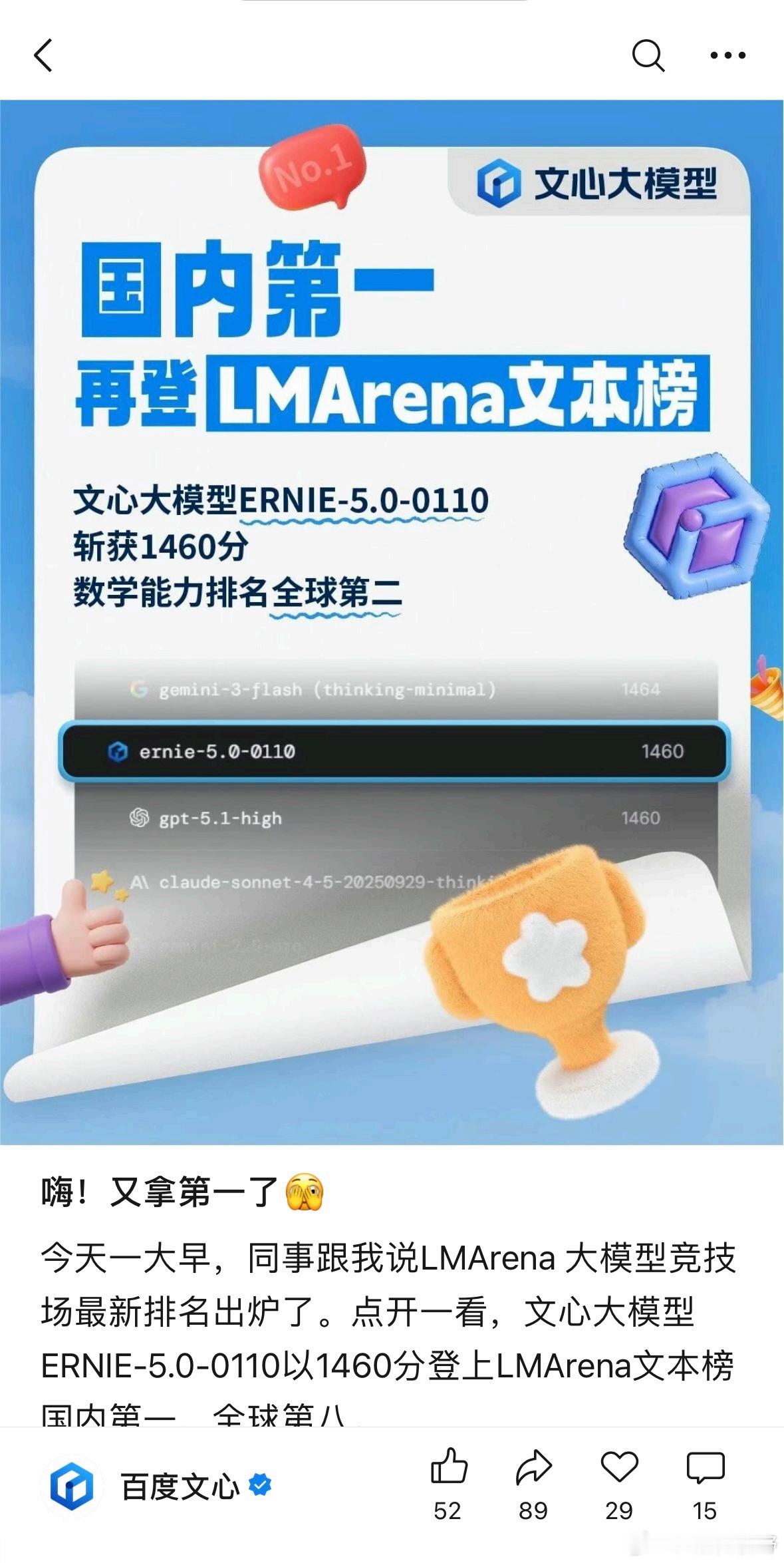 【从持续登榜到正式发布,文心5.0为何选择此时“亮剑”?】最近几个月,关注AI技术进展的人都会注意到一个现象:在LMArena等国际权威评测榜单上,百度的文心大模型已成为常客,在文本理解与多模态能力评测中持续位列全球第一梯队。这种稳定而突出的表现,让业界对其新一代模型充满期待。今天,随着文心5.0正式版的发布,所有的期待终于落地,而这一发布时机的选择,背后恰恰反映出中国AI企业日益成熟的技术节奏与市场判断。文心5.0最引人注目的标签,是其“原生全模态”的统一架构。与通过模块拼接实现多模态能力的传统路径不同,文心5.0从模型训练之初,就将文本、图像、音频、视频置于同一框架中进行学习与优化。这种设计使得模型能够实现真正意义上的跨模态理解与生成,在多轮对话、复杂指令跟随、创意内容生成等场景中表现出了更接近人类认知的连贯性与灵活性。其2.4万亿的参数规模,配合超稀疏激活的混合专家结构,更在能力与效率之间取得了值得关注的平衡。值得深思的是,文心5.0选择在此时正式发布,并非偶然。一方面,模型在多项基准测试中已稳定达到国际顶尖水准,技术成熟度经受住了检验;另一方面,文心的月活跃用户突破2亿,标志着其应用生态已步入规模化发展阶段。技术与市场形成了共振,发布便成了水到渠成的“临门一脚”。这体现了一种更加务实的产品逻辑:不盲目追求首发噱头,而是确保当技术走向台前时,已具备扎实的用户基础与清晰的落地路径。从行业视角观察,2026年的大模型竞争主线正清晰转向“原生多模态”与“深度应用落地”的双重考验。文心5.0的推出,不仅是百度的一次技术汇报,更可被视为中国AI产业在全球新一轮竞赛中发出的一个强烈信号:我们已不再局限于单点技术追赶,而是在系统架构、工程化整合与生态构建上,具备了参与前沿格局重塑的能力。它的登场,或许将加速推动AI从“炫技”走向“赋能”,在教育、创作、企业服务乃至人机交互等多个领域催生更深入的变化。回望文心近期从登榜到发布的历程,我们可以看到一个更加自信、更具节奏感的技术产品化路径。文心5.0的“亮剑”,亮出的不仅是技术之剑,更是对产业发展阶段的理解之剑、对用户需求响应用户需求的市场之剑。它的到来,或许正预示着一个新的开始:当技术准备、生态规模与市场认知同时到位,AI才真正可能从实验室走进千家万户,从话题变成生产力。$百度集团-SW hk09888$