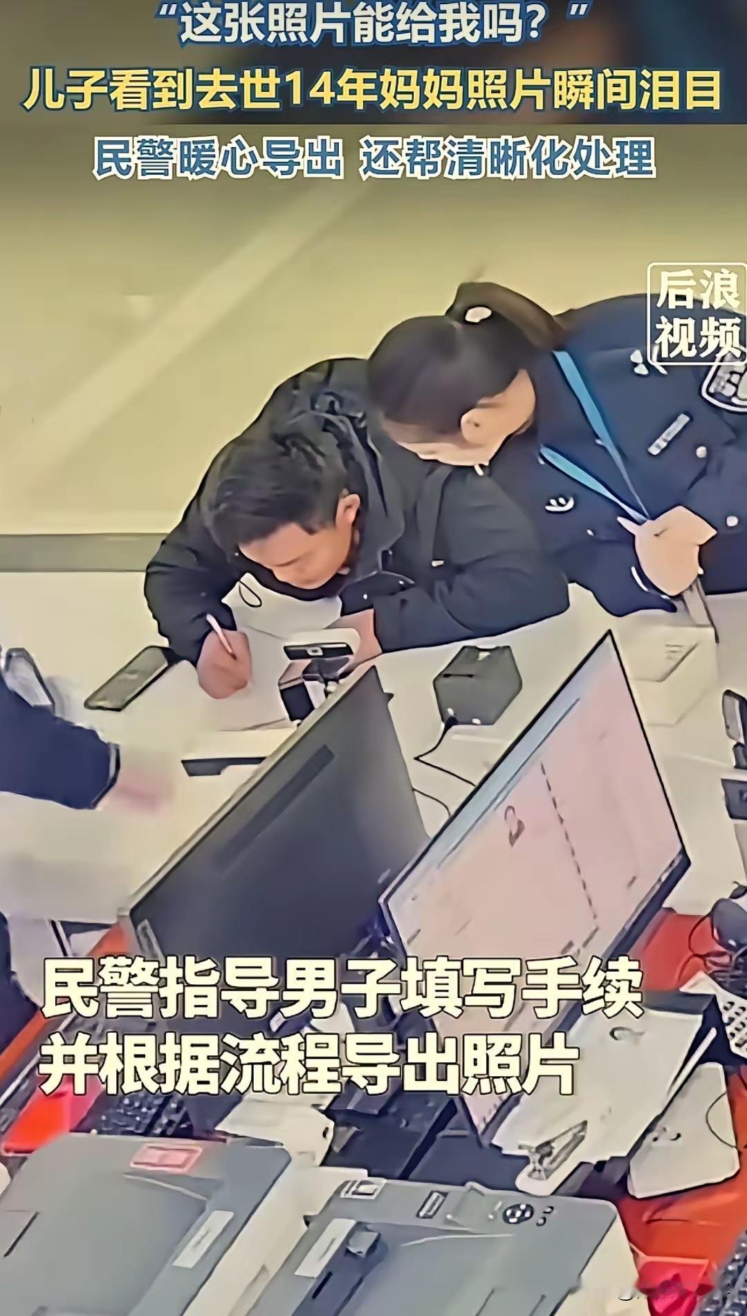 “看哭了!”安徽,一男生和父亲去户籍大厅办理变更,无意中看向屏幕,一下子傻眼了,上面竟然还存着去世母亲14年前的照片,男生当场红了眼眶,工作人员于心不忍,做出一个暖心决定,让他差点哭出了声。 根据后浪新闻1月21日报道,这件感人又暖心的事,就发生在户籍大厅里。 这天户籍大厅跟平时一样,人来人往叫号声不停。安徽小伙小赵跟着父亲去办信息变更,本来正等着叫号,眼神无意间扫到民警的电脑屏幕,当时就愣住了。屏幕上那张旧证件照,正是他14年前去世的妈妈。 他妈妈走的时候他刚上初中,后来家里搬了好几次家,旧照片全弄丢了,他都快记不清妈妈的模样了。他盯着屏幕,声音抖着问民警:“这张照片能给我吗?” 按规定,户籍系统里的照片不能随便往外导。但民警看他和父亲都红了眼,几个人商量了一下,决定特事特办。他们让小赵填了份手续,还找技术同事把模糊的老照片调清晰,最后直接传到了他的手机里。 小赵拿到照片,眼泪直接就掉下来了。对他来说,这张照片就是跟妈妈唯一的念想。 这事传到网上,有人说民警这是违规,也有人说这才是真正为老百姓办事。 我觉得,规则是死的,人是活的。户籍系统里存的不只是身份信息,更是普通人的一段人生。对小赵来说,这张照片是他14年的念想;对民警来说,多花点时间帮个忙,就是把“为人民服务”落到了实处。 现在各地都在说要人性化服务,这件事就是个例子。不是说按流程走就行,而是要在规则允许的范围内,给老百姓多一点温暖。 大家之所以被这事打动,就是因为很多人都懂那种弄丢重要东西、又失而复得的心情。民警没破规矩,却让办事窗口多了温度,这种做法值得其他单位学学。 各位读者你们怎么看?欢迎在评论区讨论。