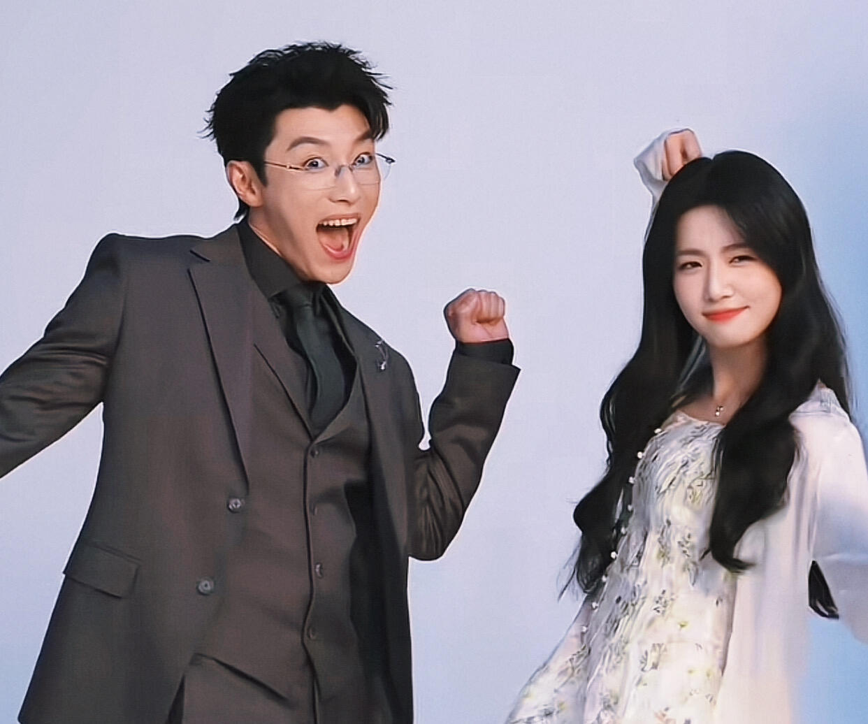 完全放飞自我了的两个人片场两人太欢乐了哈哈哈卢昱晓还学代旭推眼镜!放飞自我拍照好欢乐哈哈哈哈