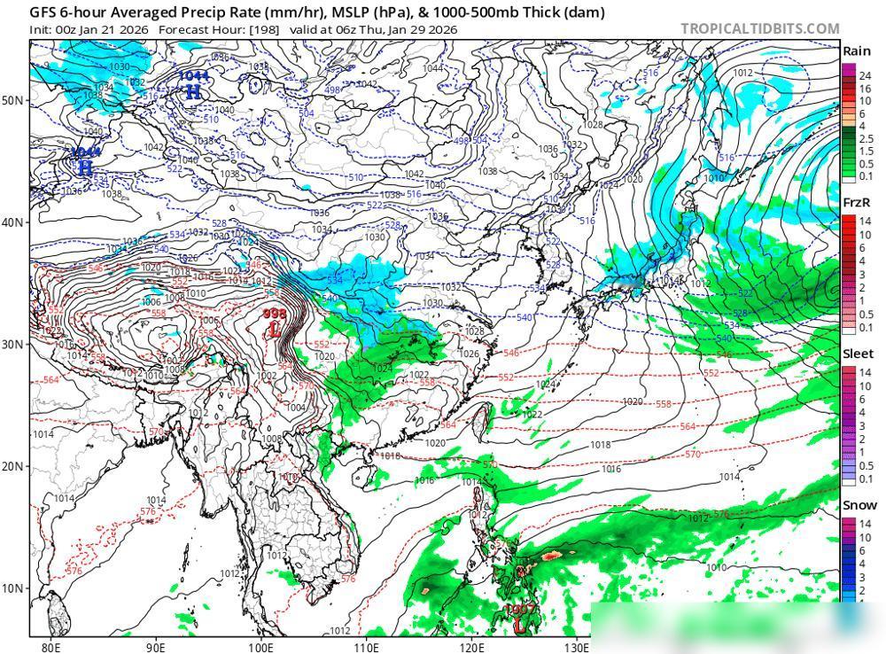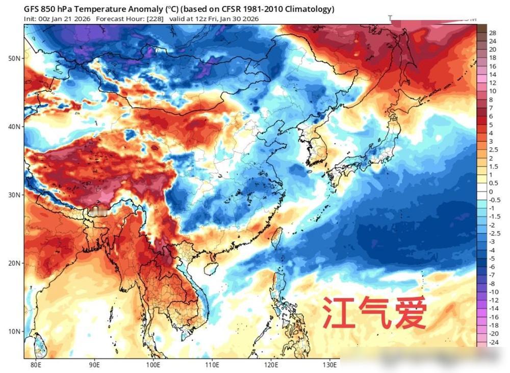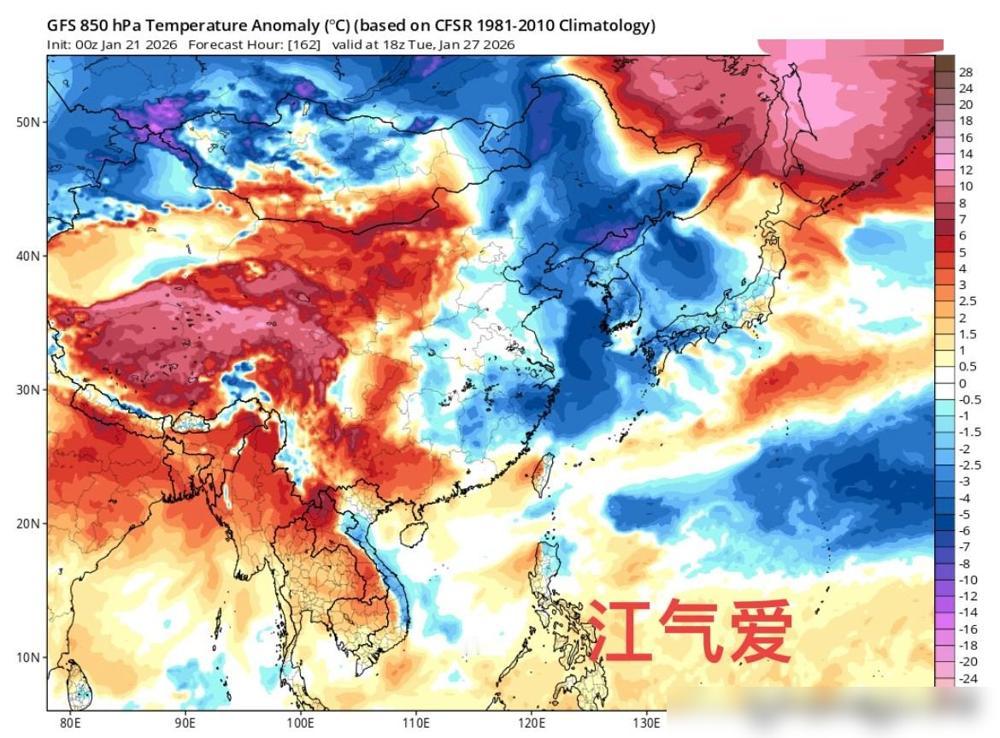 【下旬雨雪追踪】gfs更新报把月底27号冷空气调弱了 但水汽活跃性看上去并不差。 简单说就是气象模型又变脸了,虽然27号这波冷空气的预期力度被削了些,但因为水汽补给还算活跃,湘赣浙一带的雨雪形势还是被“染”上了点颜色。 我倒觉得冷空气“调弱”未必是坏事。 要是冷得太干脆,水汽直接被扫出门,反而可能什么都落不下来,现在这种水冷汇合的拉锯感,给南方留下的想象空间反而更多。 比起27号,其实我更在意的是超算里246小时后的那个大形势。 模拟显示蒙古国那边有个横槽在慢悠悠地挪,而且位置偏西,这通常意味着后面的冷空气蓄力时间会更长,爆发力也可能更猛。 再加上江南上空现在红通通的一片,暖湿气流显得特别亢奋,这种“前暖后冷”的配置往往在憋大招,后期那个过程看着确实比前期更值得警惕。 当然,只要还没进入“临近预报”的范围,所有的模拟结果就都还有变数。 咱们现在看这些主要还是捕捉一个天气趋势,具体的落区和强度,还得盯着后续的调整才行。