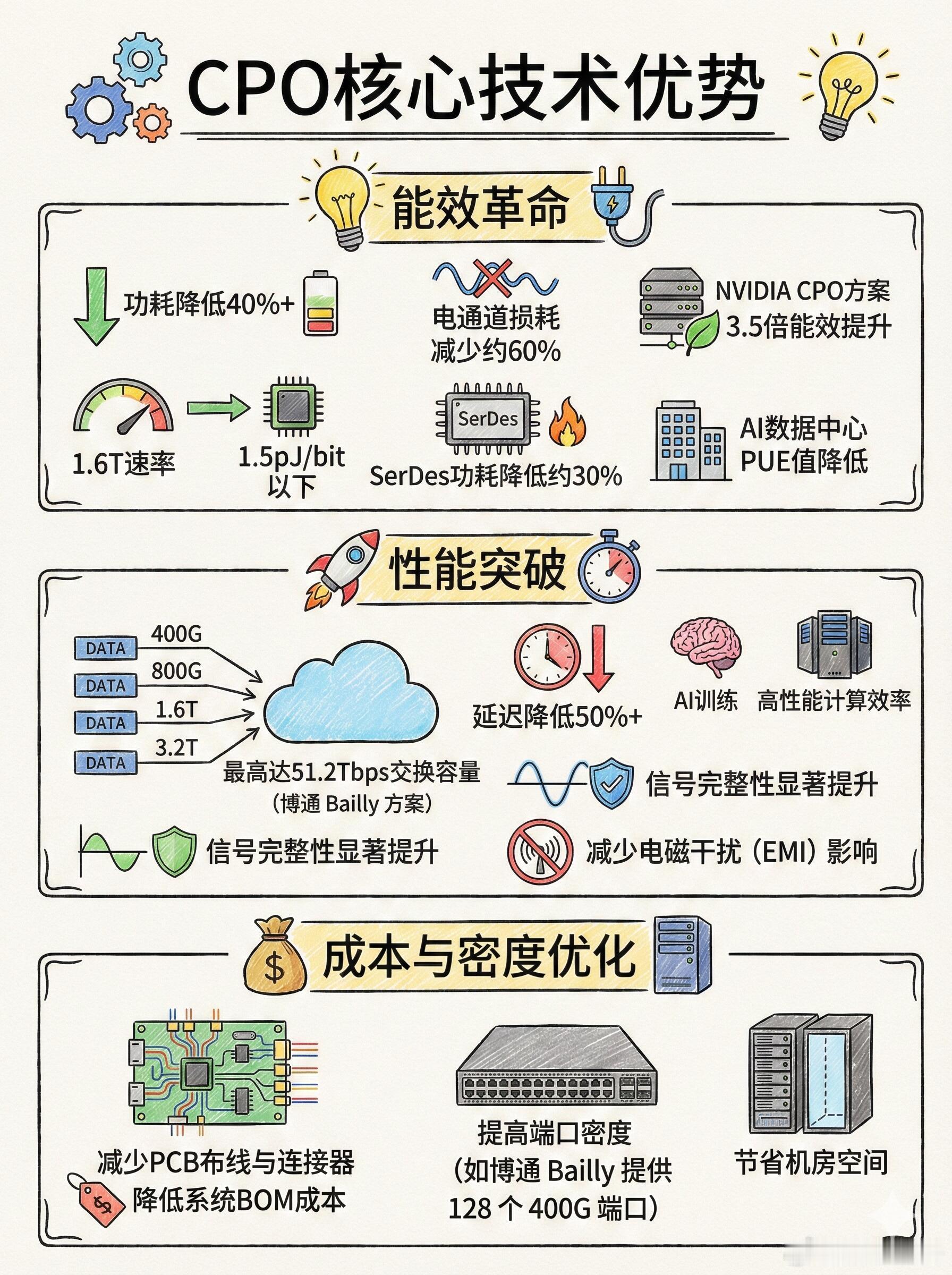 1分钟搞懂CPO➡️CPO 作为光通信领域的颠覆性技术,通过光电深度融合解决了 AI 与大数据时代的传输瓶颈,是未来数据中心与算力网络的核心基础设施技术。