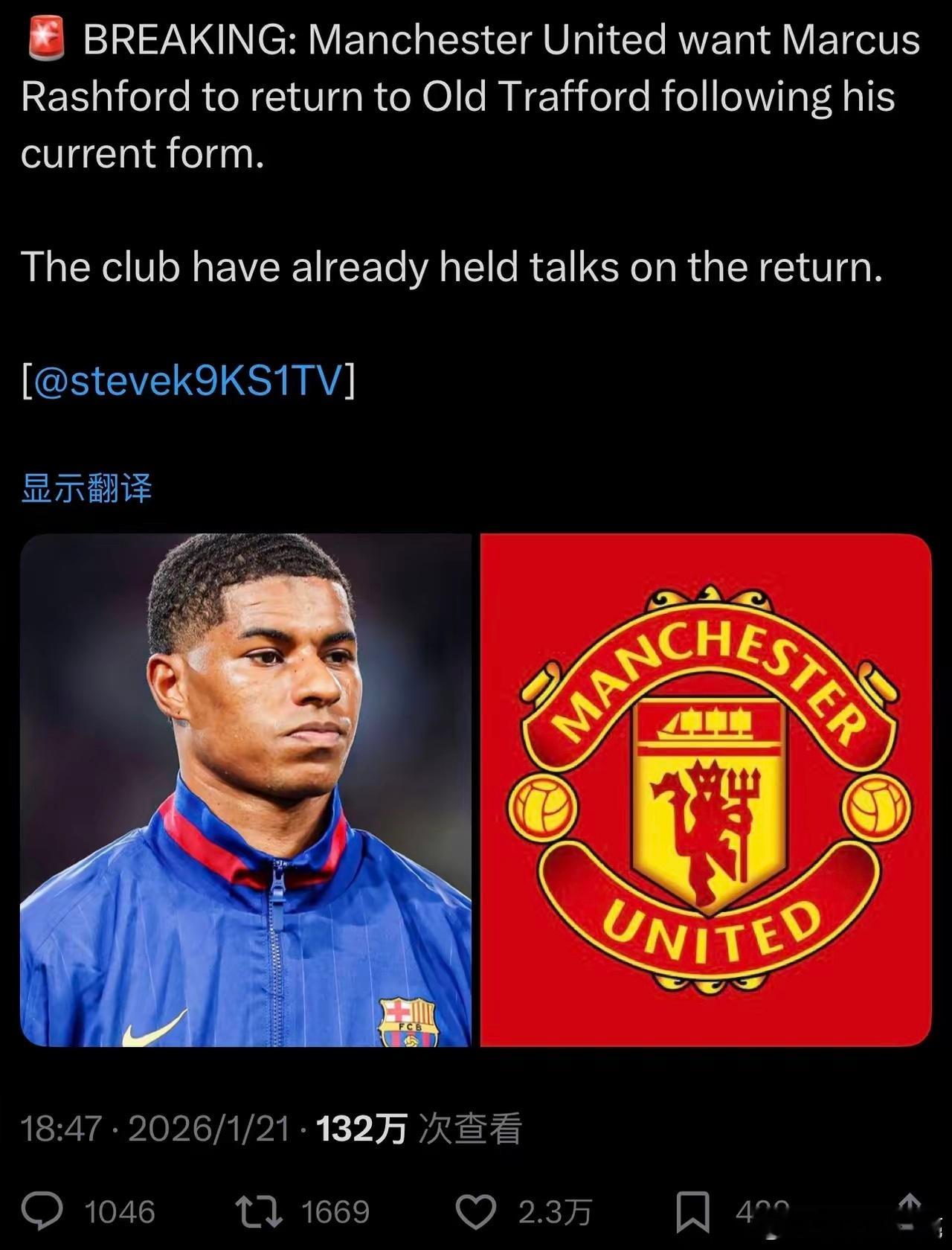 惊天大雷:拉师傅要回来了由于巴萨无法承担3500万转会费用,曼联方面已经做好了拉什福德回归的准备!🔴突发新闻:曼联希望马库斯·拉什福德凭借目前的出色状态重返老特拉福德。🔴俱乐部已经就回归事宜进行了磋商。