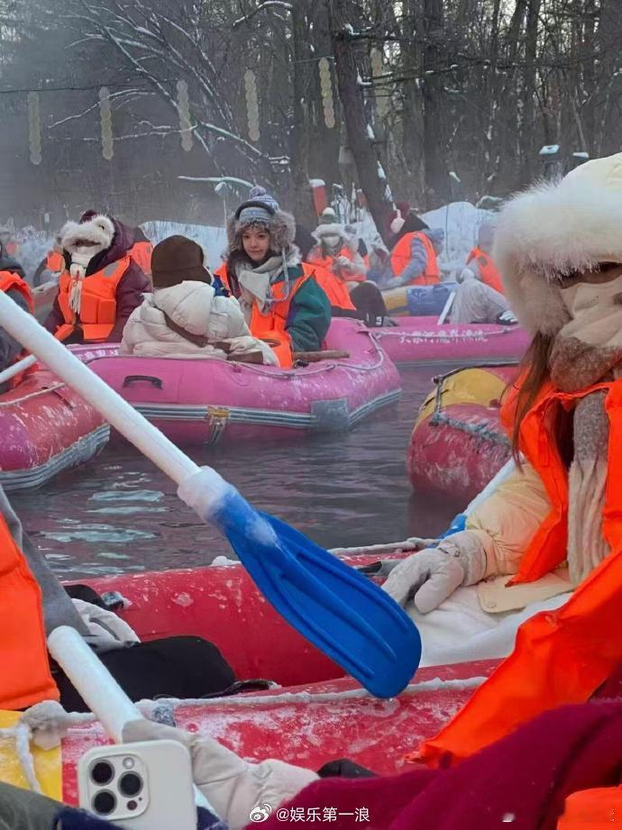 长白山偶遇章若楠玩漂流 网友长白山偶遇章若楠玩漂流,好萌的小女孩!