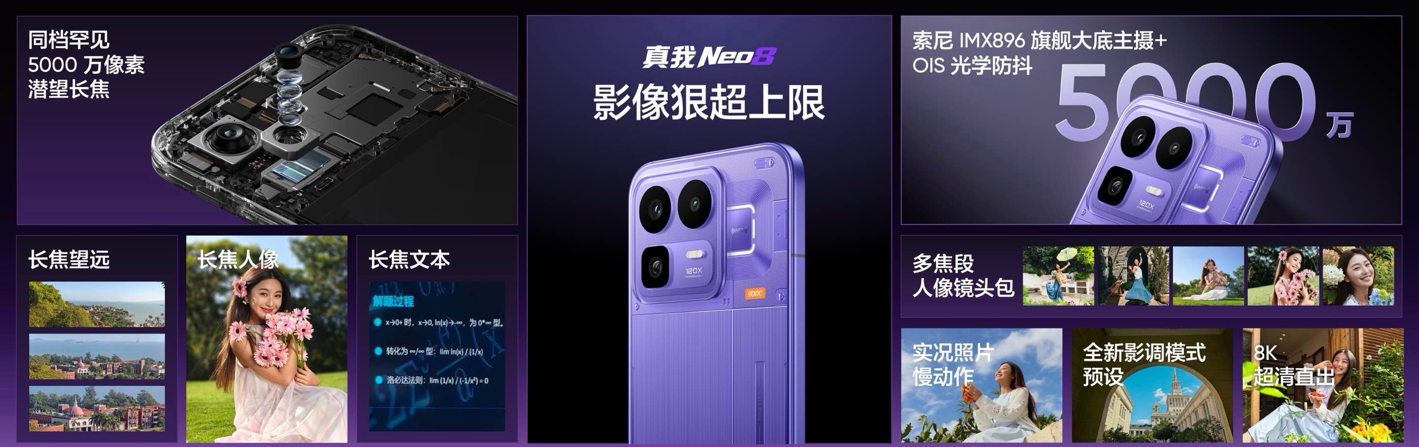 真我Neo8来了~够硬核165Hz三星苍穹屏,功耗较144Hz降低16%,发光能效提升26%,手动峰值亮度1000nit、全局激发亮度1800nit。还有第五代骁龙8旗舰芯(台积电3nm制程),搭配LPDDR5X内存+UFS 4.1闪存,安兔兔跑分358万。此外,支持CPU/GPU频率、五档温控自定义调节;39225mm²超大散热面积,主流游戏满帧运行(含30+款手游原生165帧),并且支持PC掌机模式,可以玩Steam上的PC游戏。机身透明RGB后盖(单层透明立体分区工艺),觉醒光环系统(电竞/通知/音乐光效),金属中框+玻璃后盖,三款配色(赛博紫、起源白、机甲灰),内置8000mAh电池,支持80W快充,前置1600万镜头,后置5000万主摄 + 5000万潜望长焦 + 800万超广角三摄,IP66/IP68/IP69三重防水;苍穹通信系统+信号芯片S1(弱网场景优化);双频GPS+三频北斗定位;立体双扬+X轴马达+红外+NFC。这配置你们觉得如何呢?