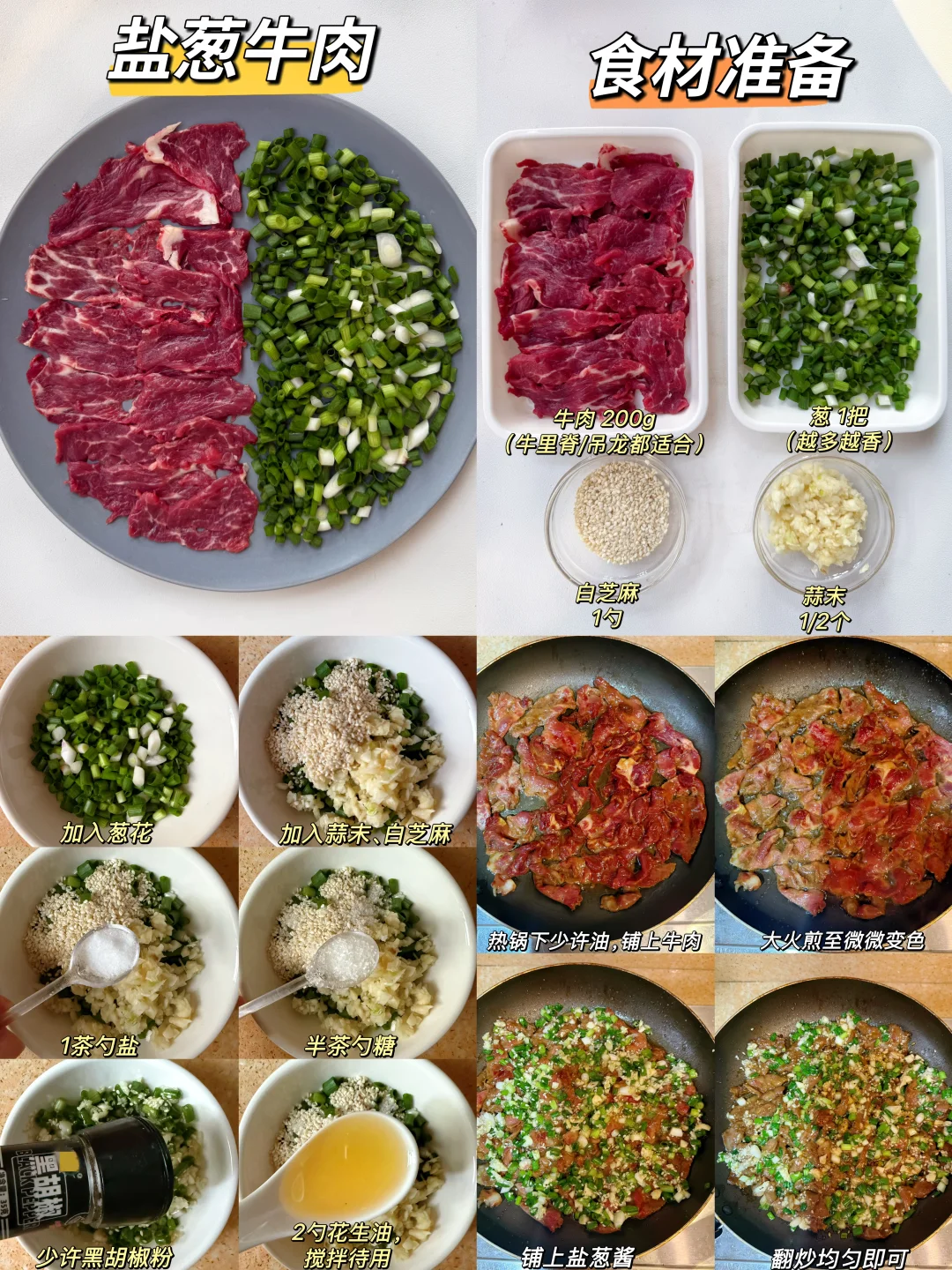 薄切牛肉裹上清爽盐葱酱,口感轻盈又解腻!