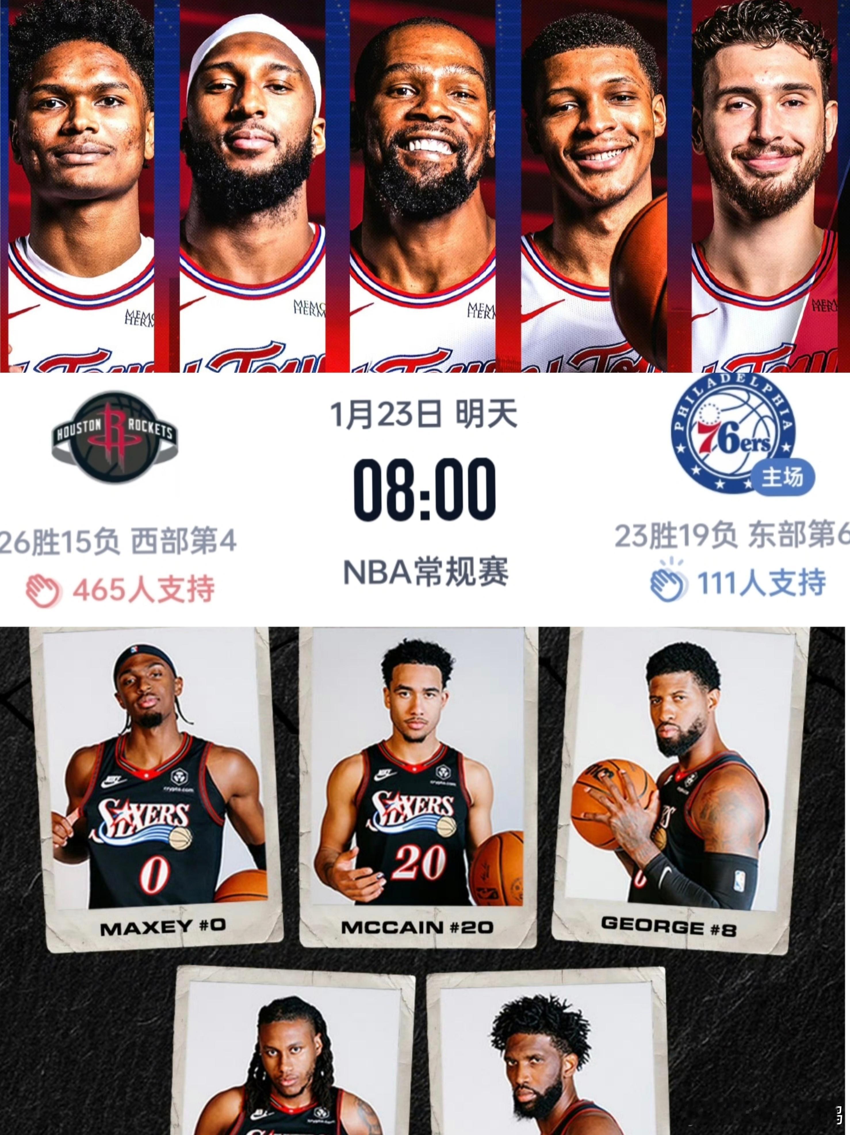 火箭76人明日比赛预告!火箭收获一条非常糟糕的消息!ESPN预测火箭胜率高达63