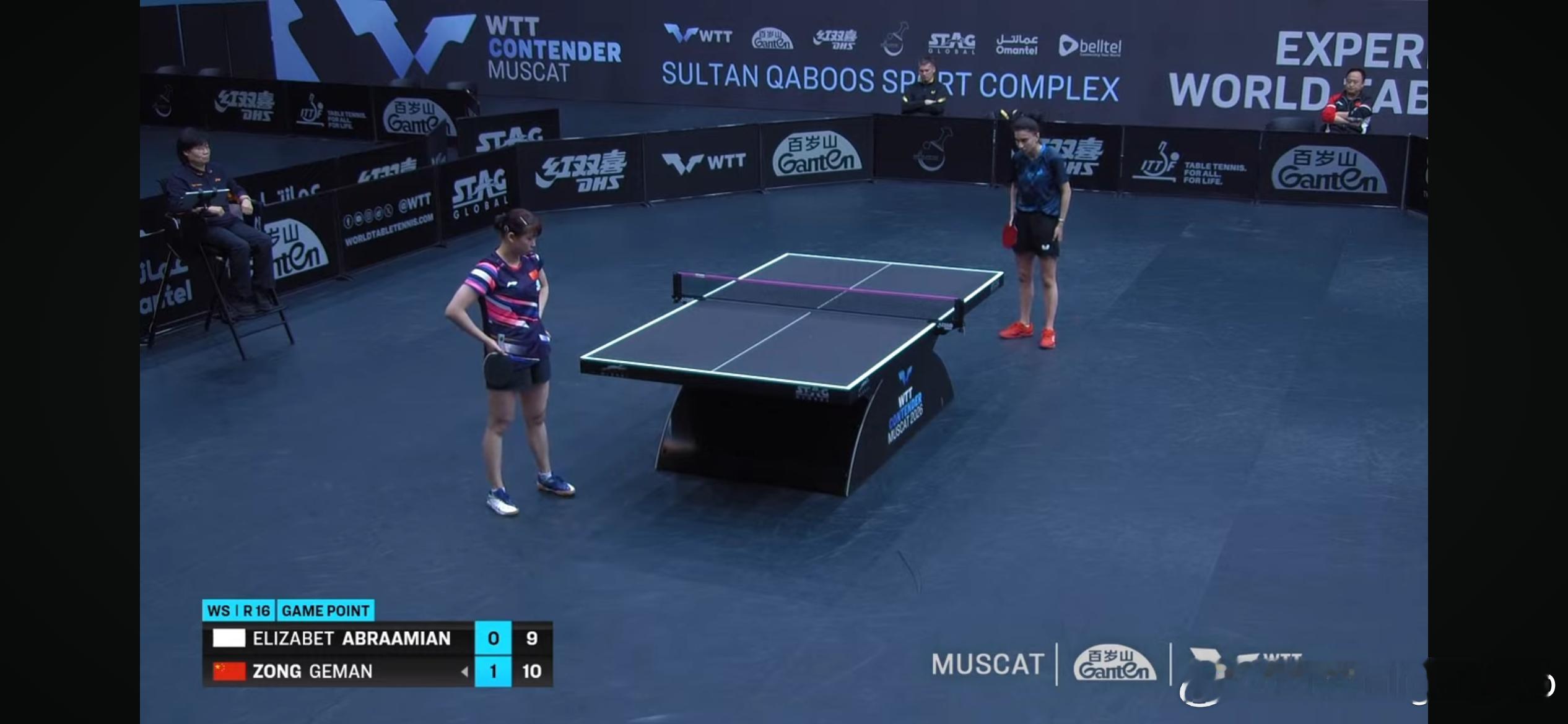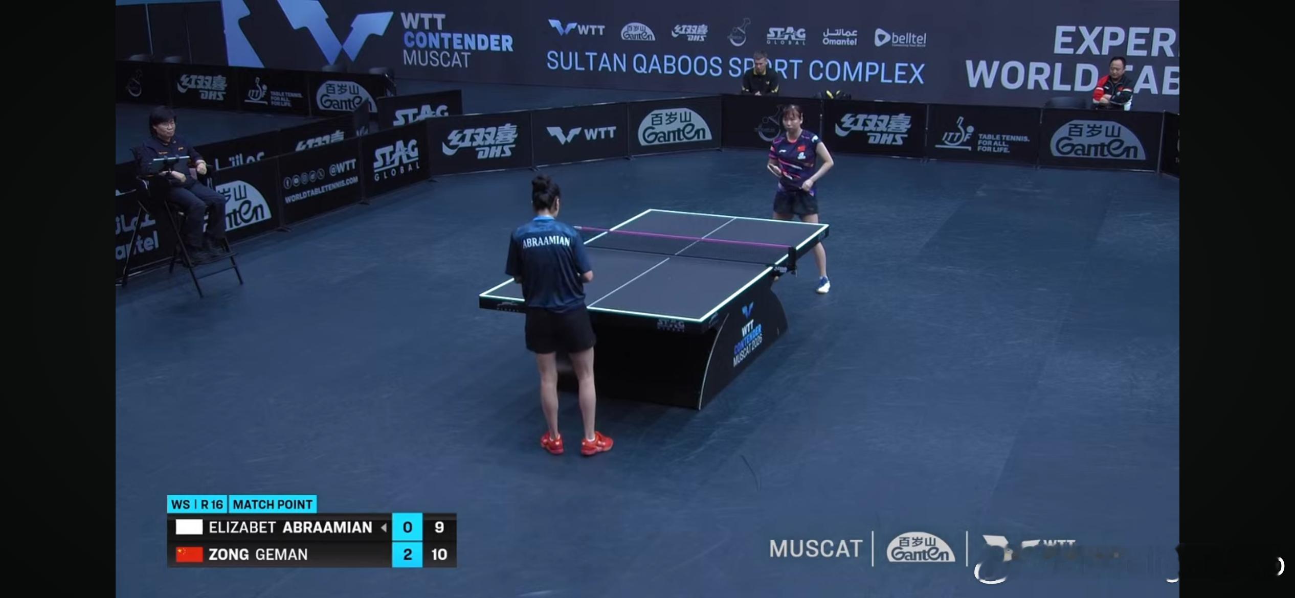 WTT常规挑战赛马斯喀特站2026 女单1/8决赛:🇨🇳纵歌曼3比0阿布拉米安(AIN)(11-9,12-10,11-9)下一轮🆚覃予萱🇨🇳