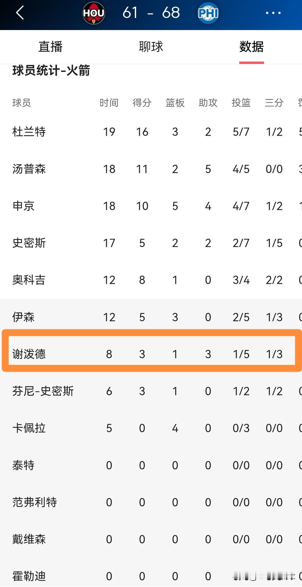 火箭新星谢波德真是神一场鬼一场!在今天火箭客场挑战76人的比赛中,目前双方的上半场比赛已经结束,火箭暂时以61:68落后于对手。在前两节比赛中,谢波德未能延续上一场比赛的火热状态,他在替补出战的8分钟里,投篮5中1,其中三分球3中1非常低效的得到3分,还有2次失误,他的场上正负值为-3。 目前谢波德在进攻端最大的问题就是不稳定,他确实像很多人说的那样神一场鬼一场。