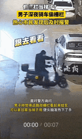 活久见!真是偷啥的都有!湖北黄石,一男子下班骑车回家,突然看到一个人鬼鬼祟祟的,出于好奇心就跟了上去,万万没想到竟然是偷路边栅栏想当梯子用! 好好的公共栅栏,愣是被当成了“移动梯子”的目标,偷东西的脑洞也太大了吧! 再说了,这栅栏的材质和结构,真能当梯子承重吗?怕不是还没爬上去先散架,安全都没保障!